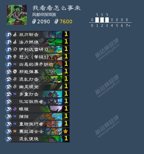 后续的主动宝藏选择尽量找buff,血月,号角,香蕉这些卡都可以拿,5-1亡语蜡油是这套最强的主动宝藏卡,这套卡组可以和瘟疫火掰手腕的,谁用谁知道,但是在村里怕法系卡组解光场面,这卡组有几个细节讲一下,在知道对面不好清理场面的情况下不着急变古夫,继续铺,争取buff一波迅速结束战斗。月光指引也可以换成团本去更好的过度新手村,在内战的时候尽可能的去抢到先手,亡语狼的内战就是谁先手谁赢面大,你多转一个怪就可以多站住场面蹭血。记得拿远古映像