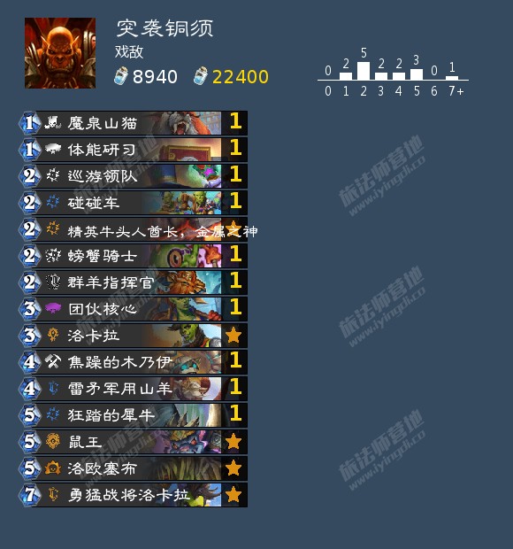 然后是狩猎经验,这张卡找机会打出来,一手的一费突袭11加上牛头人突然斩杀,变形重组器基本上是打猪,或者一堆小杂毛在场的时候强化一波,场上有鼠王的时候尽量让其中一只进入休眠状态再重组,增压这张卡对大多数卡组都很垃圾,但是对于突袭铜须不一样,+2生命值可以躲很多aoe,也可以去抓心智末日这种过牌,尽量别抓太高费的卡,美女野兽和这几张卡比起来稍微逊色一点 记得拿远古映像