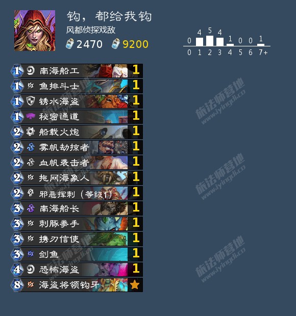 但是我玩海盗贼玩的很菜,一直都没有12胜,还得继续多学习,只看锁子哥玩过海盗贼,海盗贼呢一套是宝藏带王牌降临,另一套是带龟壳,各位可以根据自己的感觉随意更换,