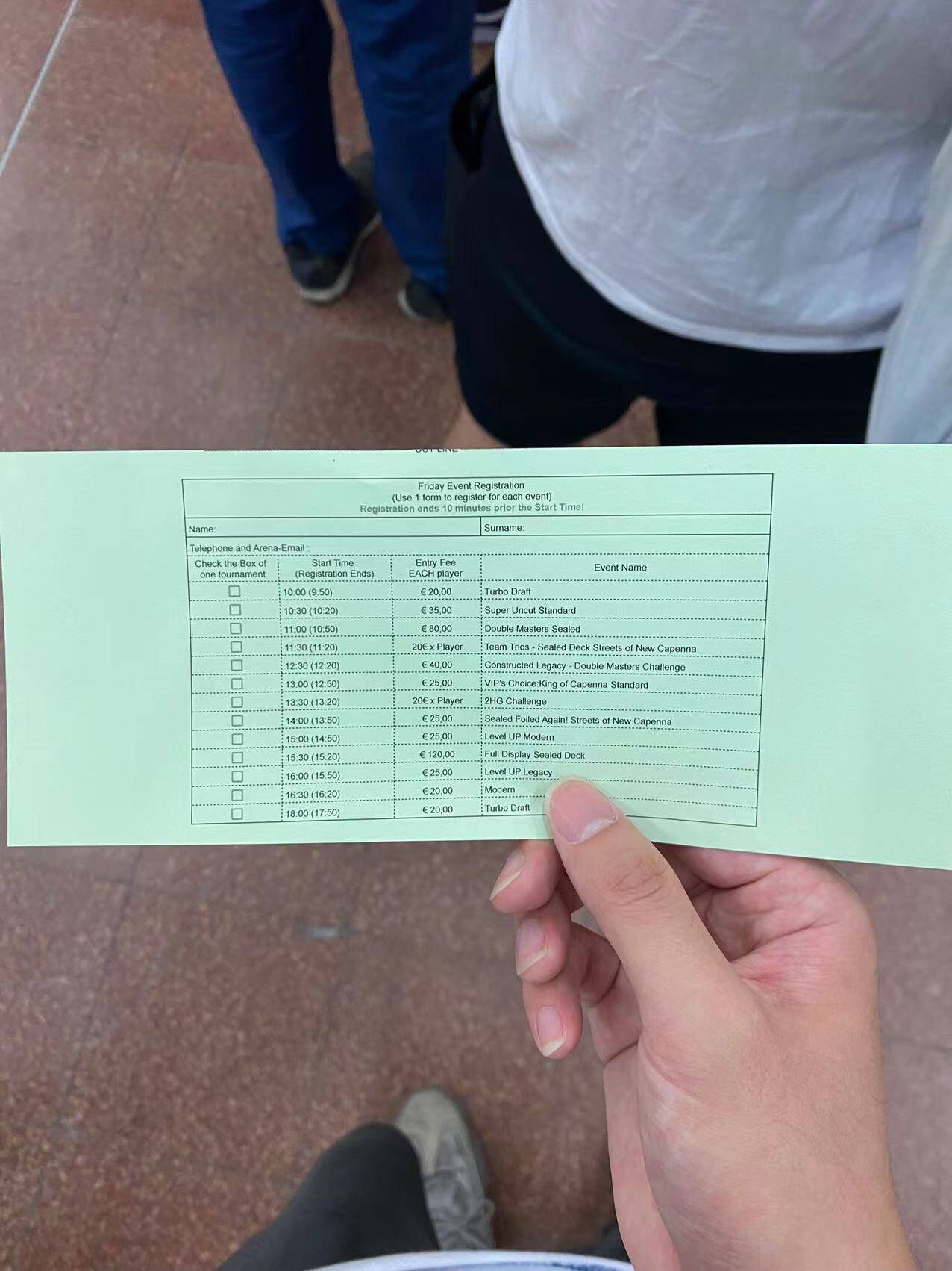 Day3,我们早上从酒店check out之后拎着行李箱来到会场享受这场盛会的最后一天,上午用三个参赛券,我们仨报了一场8人SNC现开,因为只要1胜就能拿好多tix,所以我们商量只要有一个人一胜我们就分赃tix,但天不随人愿,三人一把没赢2333。