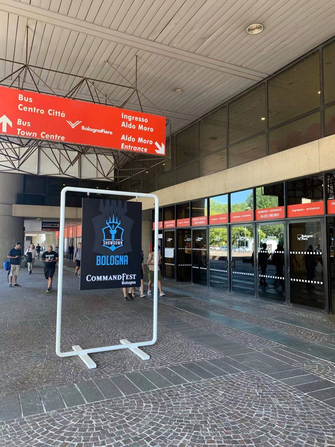 Hello大家好,我是来自北京的牌手恐惧大魔王x,由于在意大利米兰读研的缘故,有幸参加这次位于意大利博洛尼亚由欧洲Legacy承办的万智牌公开赛:博洛尼亚LMS,举办时间是2022.7.15-2022.7.17,赛制分为SNC的现开和T2,由于我对这两个赛制都没啥兴趣故选择去逛逛会场打打边赛。在收拾好行李之后,7.14号晚上乘坐意大利版的和谐号到达博洛尼亚并入住酒店,与两位佛罗伦萨的小伙伴儿面基成功(老韩和叶哥)~他们都参加指挥官节,不过老韩也没报正赛,在之后的几天他跟我一起打打薪传边赛,而叶哥要征战后续的正赛现开。