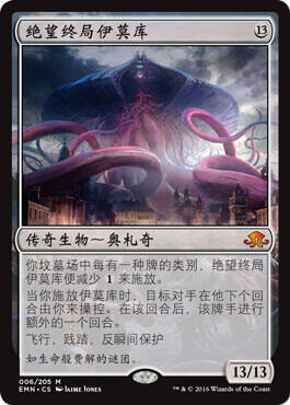 绝望终局伊莫库是躁狂体系最大的终端,也是镜像以及各种消耗战的最好牌。更多的卡牌类别让伊莫库不需要欧那斯爆费就能出,穿越沃文森还是比艾拉达力的召集更低费的导师来找这个更低费的伊莫库,让一回合导出伊莫库直接拍的计划更现实。