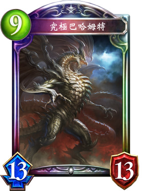 究极巴哈姆特能在朱庇特、爆能圣辉等回费手段,以及梅丹佐跳费效果的帮助下,在第9回合甚至更早瞬念召唤登场,在消耗战中压缩对手资源。在对进化协作皇、守护教等对手时,生拍巴哈也能发挥奇效。