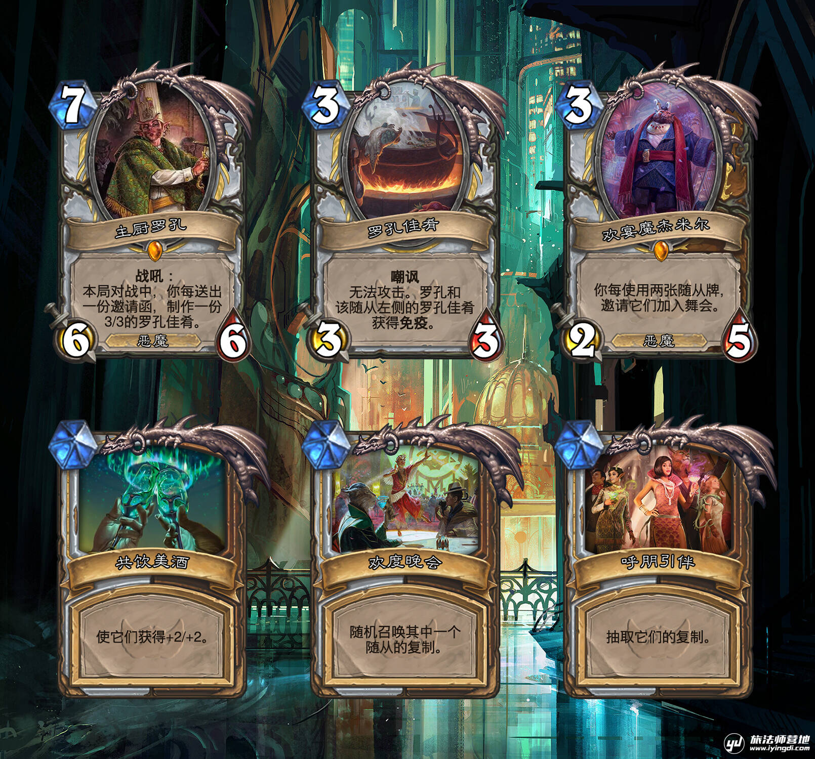 【欢宴魔杰米尔】在三个选项中选择一项,即使第一个随从死亡依然可以触发,且“欢度晚宴”可以选取到在墓地中的第一个随从。
