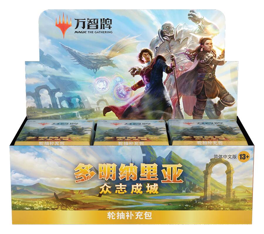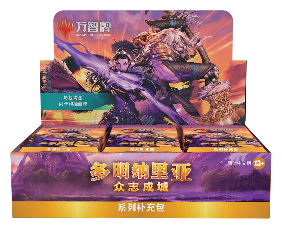 “每包必有传奇”的产品机制会在多明纳里亚:众志成城回归:此次发售的系列、轮抽和聚珍补充包的每包都内含传奇牌,老玩家熟悉且喜爱的传奇角色会一一登场。本系列拥有40余个传奇生物,还有意想不到的角色亟待新老爱好者发掘。