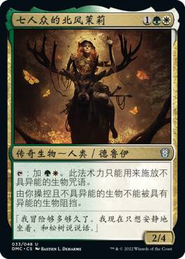 以上是售前赛上提供的30张赠卡的头三张,全部30张赠卡分别致敬万智牌30年历史长河中的每一年。每一张赠卡都是按照首次印刷的年份顺序发行的重印牌。这些牌的稀有度不都一样,大多数是英语版,其中有七张会是万智牌发行的其他语言版本——首张赠卡范得贺恩妖精仅提供德语版,如上图所示。