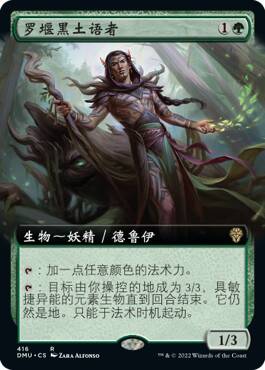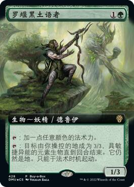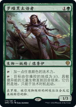 (罗堰黑土语者这张稀有牌也可在多明纳里亚:众志成城中开到。)