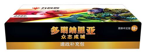 随多明纳里亚:众志成城回归的速战补充包,会加入轮抽、系列和聚珍补充包的行列,并伴随之后的主要系列发售。该补充包内含两张闪基本地和两张稀有牌——一张该速战补充包特有的全新稀有牌和一张多明纳里亚:众志成城的稀有或秘稀牌——总共有20张万智牌牌张。共有十种主题——每两种对应五种颜色之一——混在一起,洗牌,即可开玩: