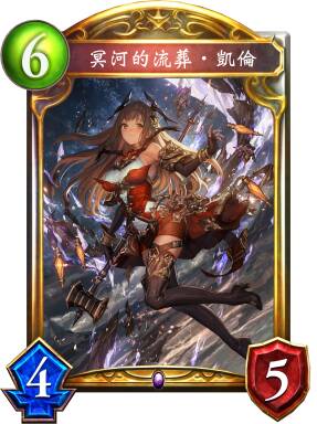 冥河的流葬·凯伦能通过激奏从牌堆中拉出并破坏死骸金属巨星,供狩魂者复活。而在牌堆中没有巨星的情况下,激奏凯伦有机会拉出狩魂者,可以在第5回合配合拉拉达成组合技。