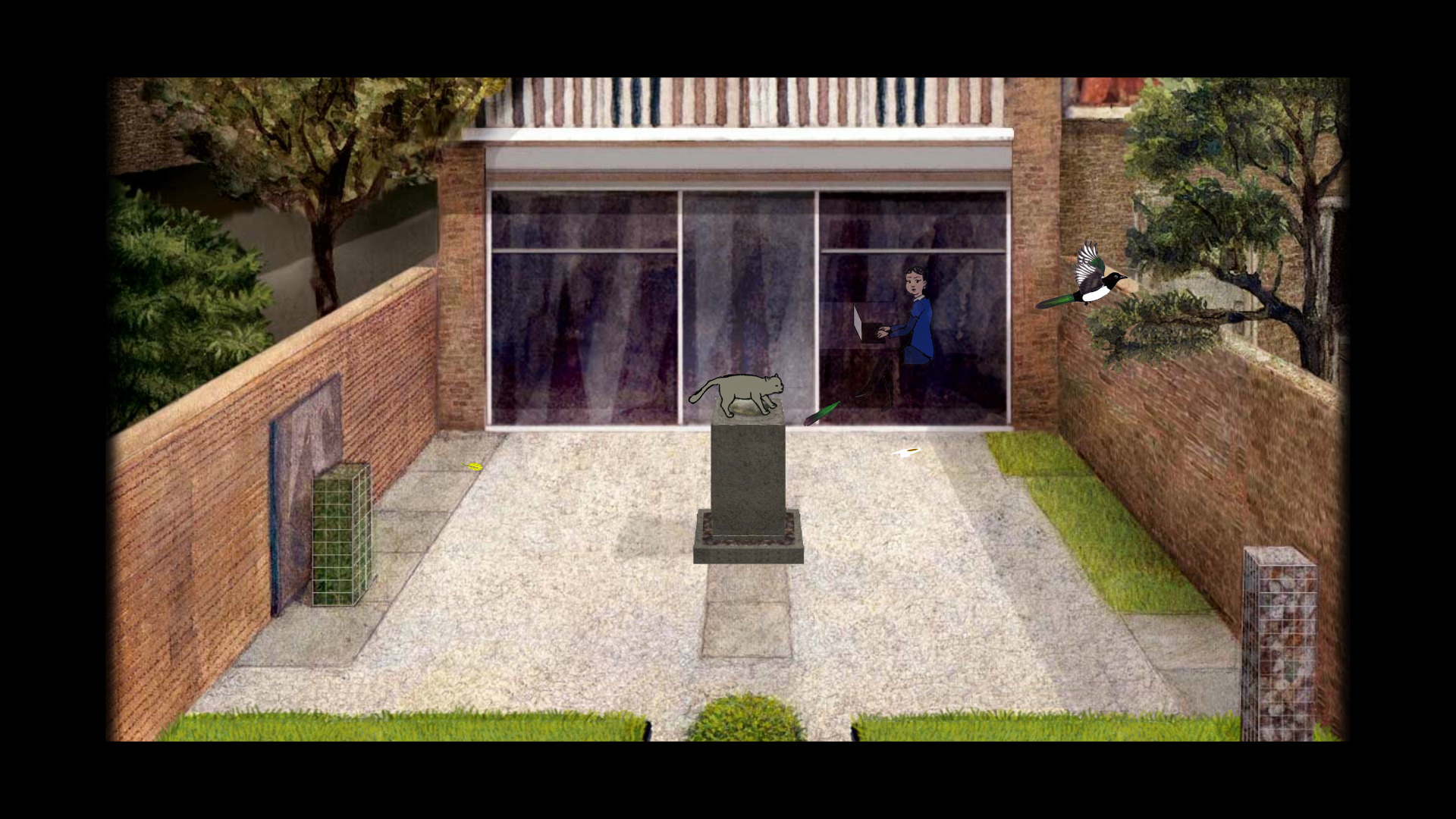 第一关非常简单,我们只需要一开始挡住小汽车玩具的石头就能分散喜鹊的注意力,同时在将石头移到中心喷泉的上方,吸引喜鹊矗立,然后偷袭就可以了。最后女主人出现,将我们送到了下个庭院之中。