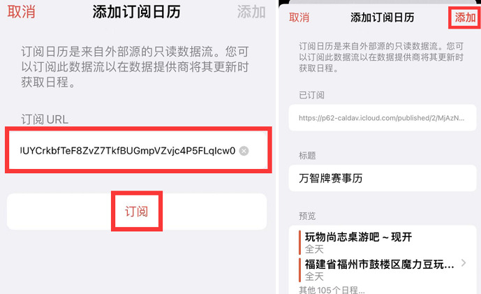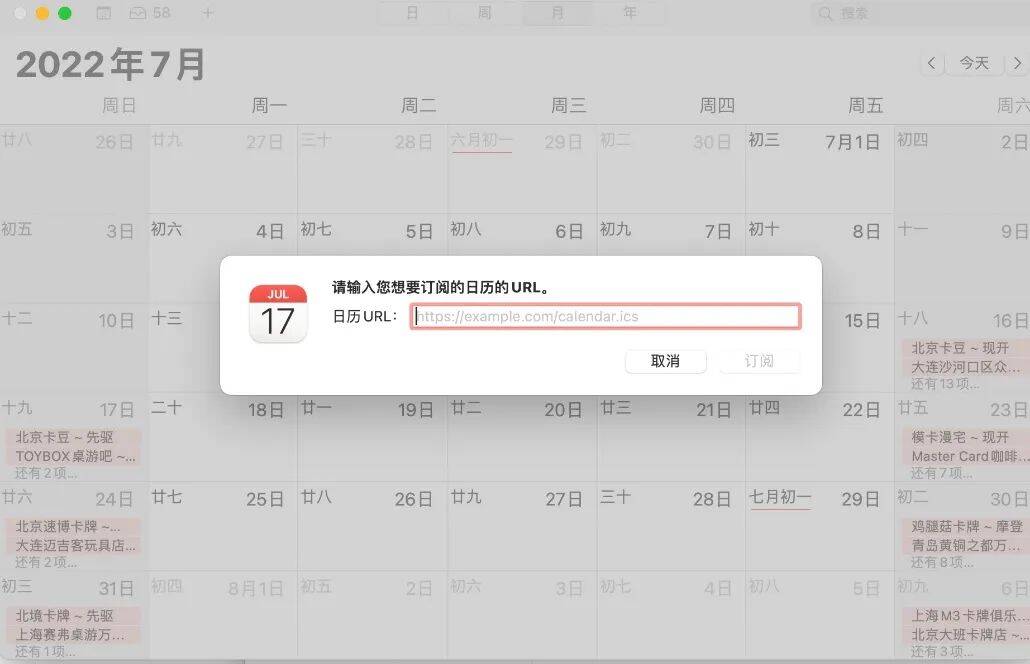 将订阅链接粘贴至「日历URL」框中即可完成订阅。