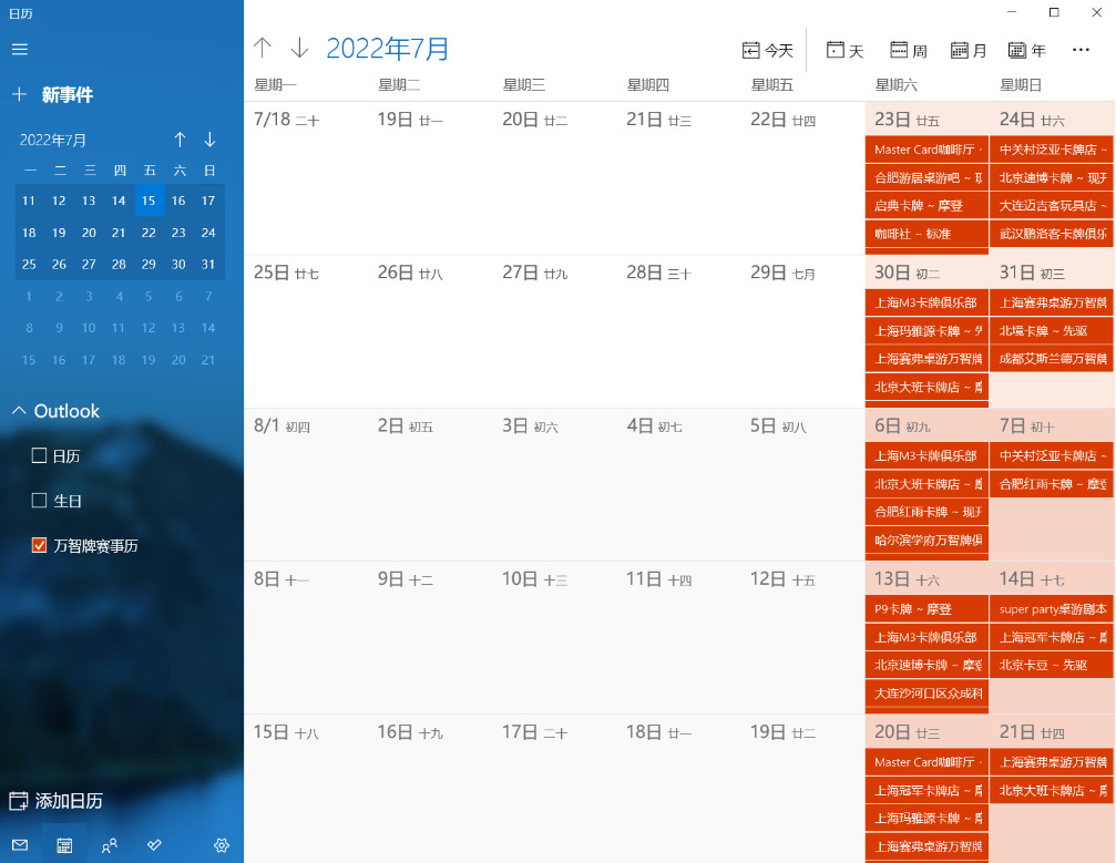 订阅完成后,如你的电脑使用了该微软账户登录,也会在Windows自带的「日历」应用中显示(如已删除可在Windows应用商店中下载微软提供的「邮件与日历」应用)。