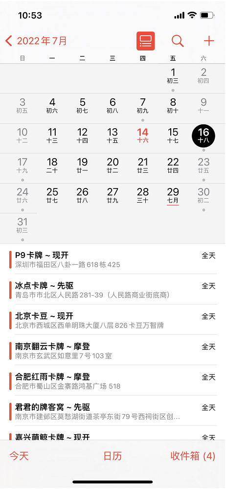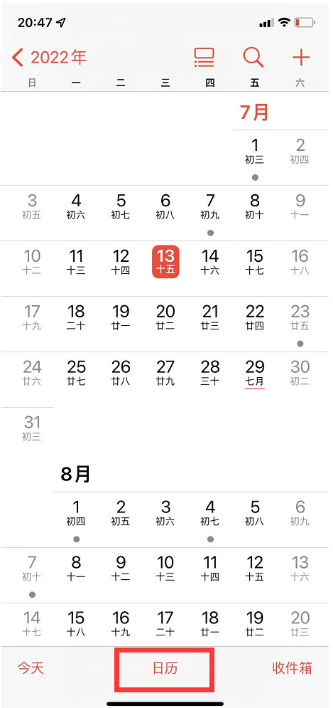 打开手机中的「日历」App,轻点屏幕正下方的「日历」;