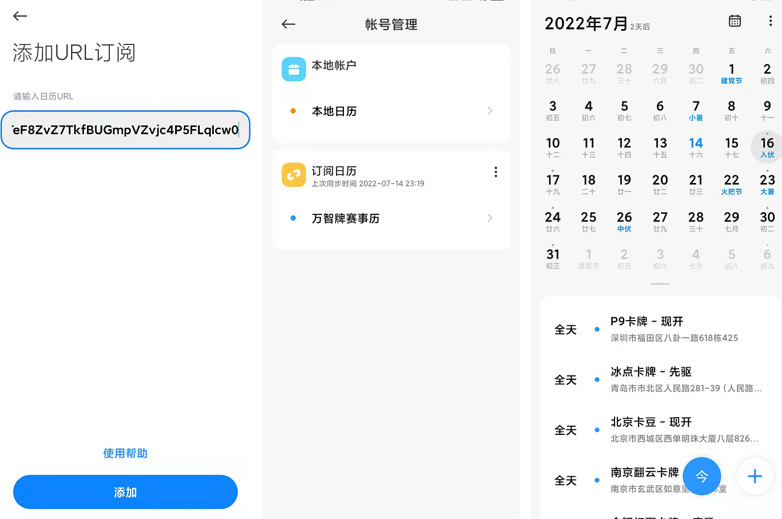 有些定制化的安卓版本以及华为的鸿蒙OS,不支持订阅外部日历,你可以自行下载第三方日历App(例如Outlook)进行订阅。