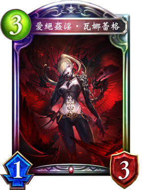 瓦娜蕾格有时还能用于堆叠自残数,帮助佛劳洛斯、炼狱之黑暗骑士触发瞬念召唤(例如第3回合场上有鲜血花园的情况下,使用瓦娜蕾格和总计2张礼物、诡谲的幽暗街道)。