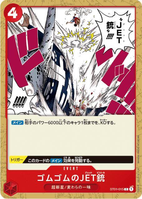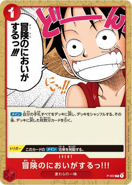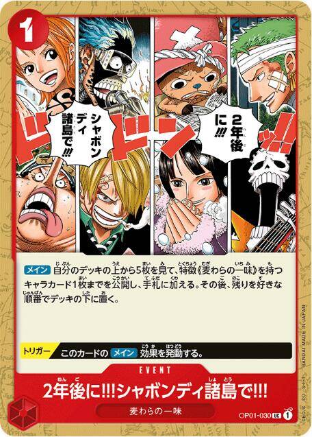 【主要】从自己的卡组上面查看5张卡片,公开最多1张拥有《草帽一行人》特征的角色卡,并加入手牌。之后,将其余卡片依任意顺序放到卡组下面。