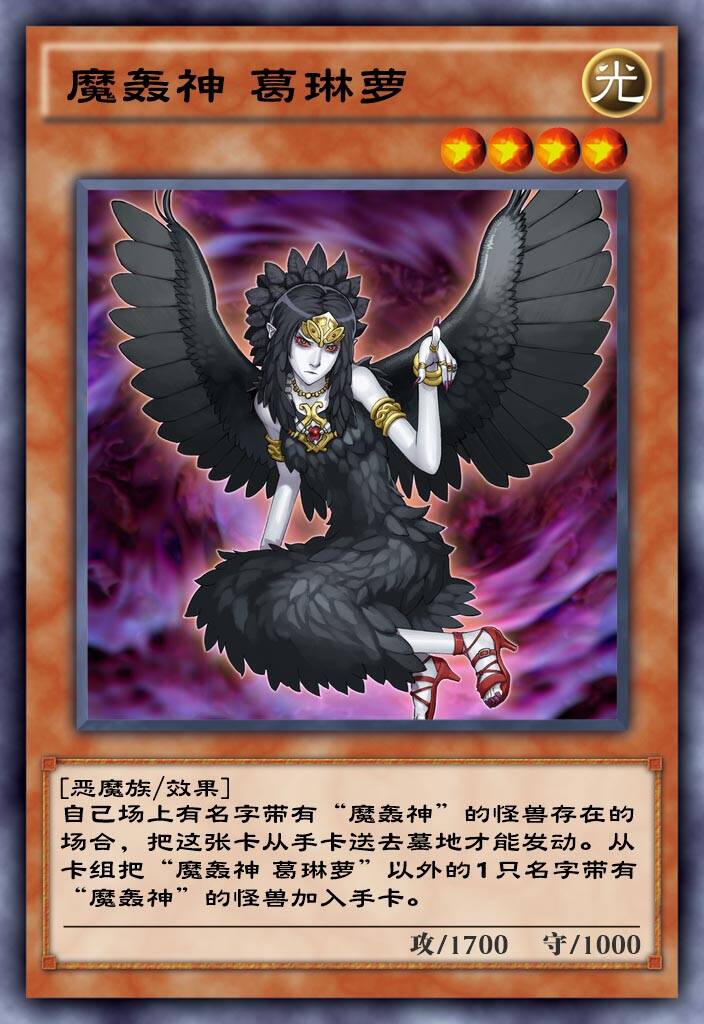 自己场上有名字带有「魔轰神」的怪兽表侧表示存在的场合,可以从手卡把这张卡送去墓地从自己卡组把「魔轰神 葛琳萝」以外的1只名字带有「魔轰神」的怪兽加入手卡。 本家非常强力的的检索卡,场上有魔轰神怪兽意味着这张卡可以检索所有本家怪兽,并且这张卡没有一回合一次,可以进行多次检索,可以搭配暗黑界进行展开.