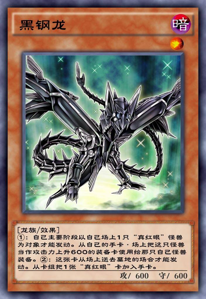 黑钢龙对真红眼来说是一张非常强力的补强卡.自己主要阶段以自己场上1只「真红眼」怪兽为对象才能发动。从自己的手卡·场上把这只怪兽当作攻击力上升600的装备卡使用给那只自己怪兽装备。 先手配合真红眼黑刃龙可以使黑刃龙在先攻攻击力达到3400并且有一次取对象抗性.这张卡从场上送去墓地的场合才能发动。从卡组把1张「真红眼」卡加入手卡,配合黑刃龙或者真红眼铁骑士可以进行解场赚卡,非常的赚.推荐抽2-3张