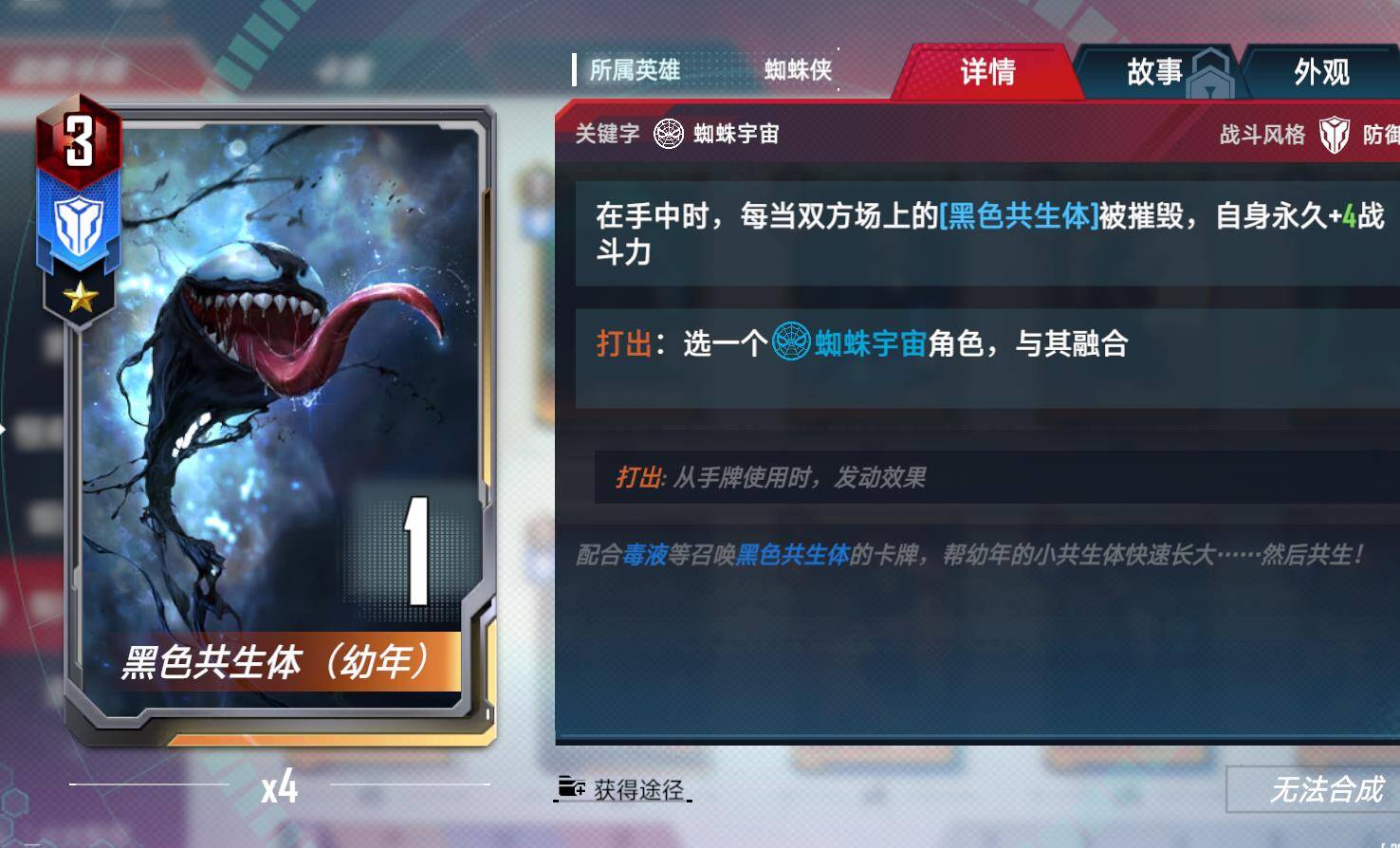 设计建议:黑色共生体,打出融合一个蜘蛛宇宙,并获得所以能力,但战力为2,4,30。会代替宿主死亡一次,死亡后宿主变为原体。
