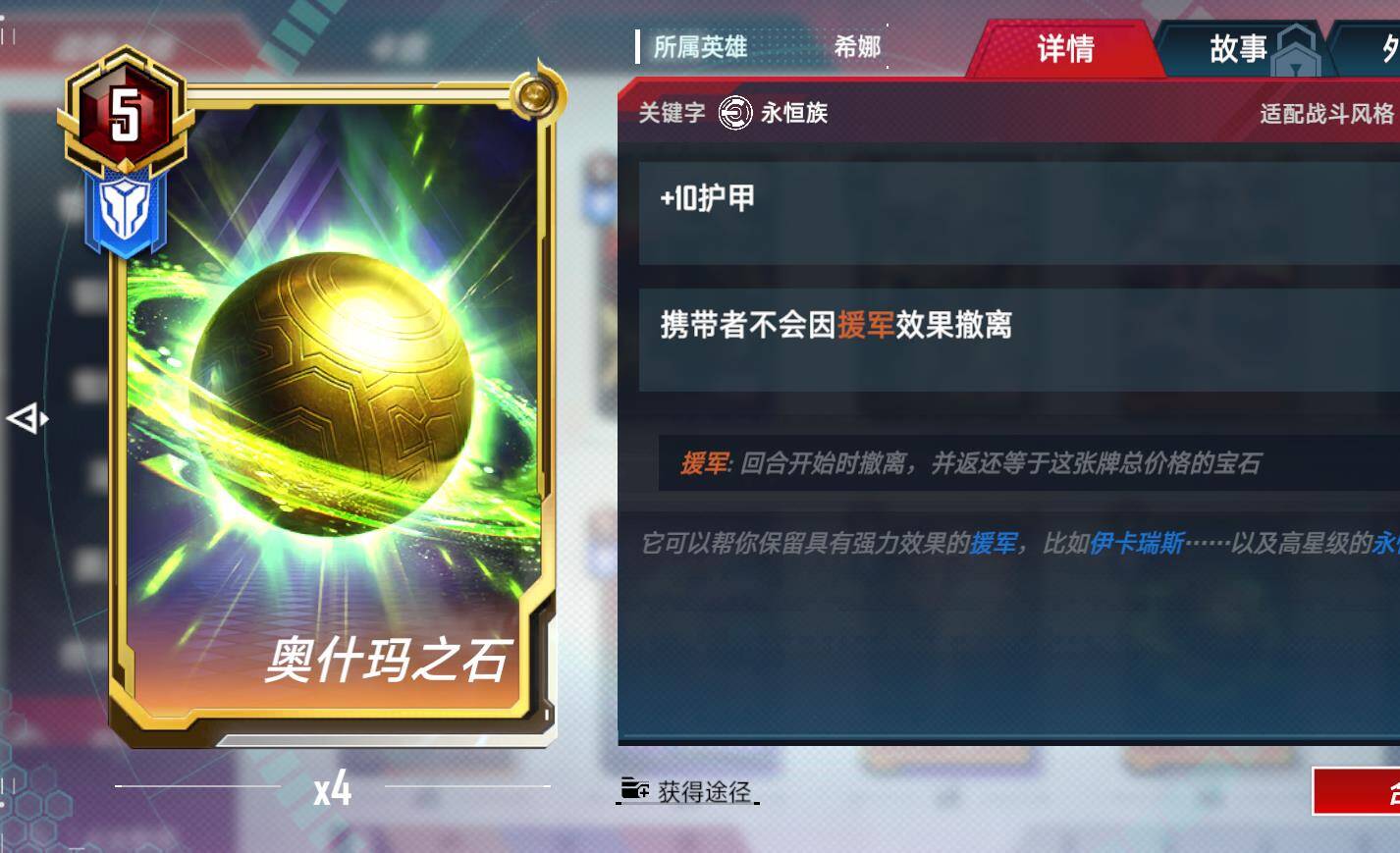 奥石玛之石,令支援卡返还双倍价格,使用后返回卡组