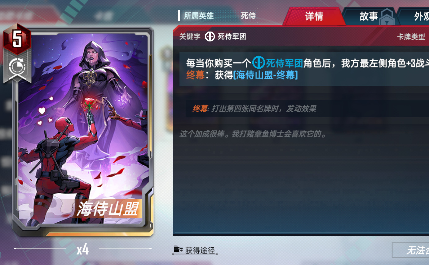 设计建议:死侍终目,选择一个我方死寺让其增加一个特殊阵营标识。(比如复仇者)