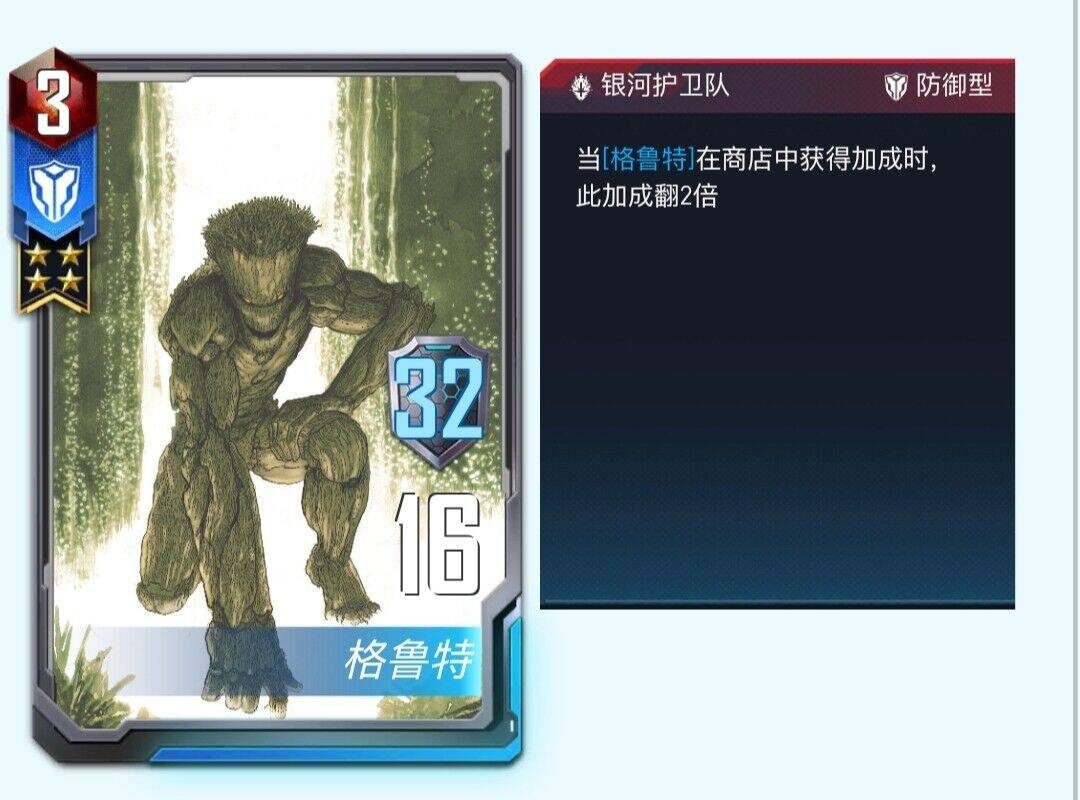 注:格鲁特当受到收藏者的加成时可以触发自身的翻倍效果
