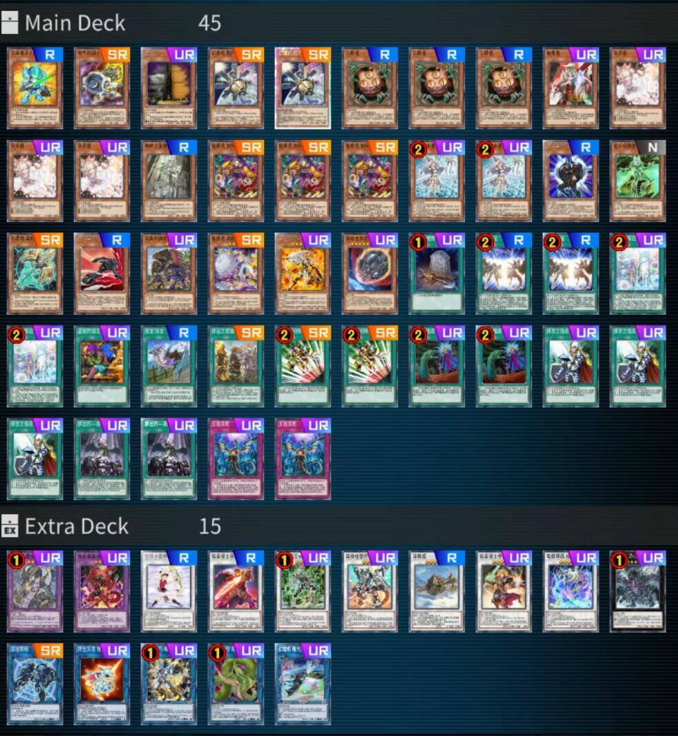 通召三眼link独角兔拿神树,特召神树link水机拉喷气link百头龙生三毛,百头龙解放自己和一毛拉卡组猎户座,2+3出罗兰发效同时猎户座生一毛,墓地喷气丢一手特召,1+3出小爱神升1星,小爱神5+3出白*管装备百头龙,小爱神遗言拿绿星义,回收除外喷气特召绿星义。绿星义可变超雷龙/或者4+5出查理,结束阶段处理罗兰的效果堆墓烟玉并拿凤凰剑,同时发动查理效果装备烟玉,还是查理效果炸烟玉,烟玉发效看对手手牌并削一。终场:白*管+对手主阶二速不取对象炸卡+精削一卡。