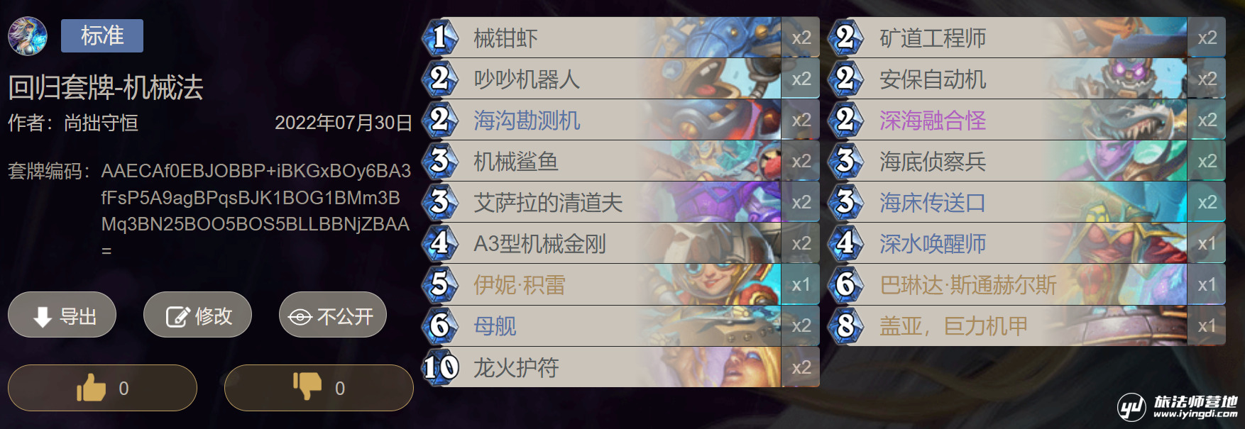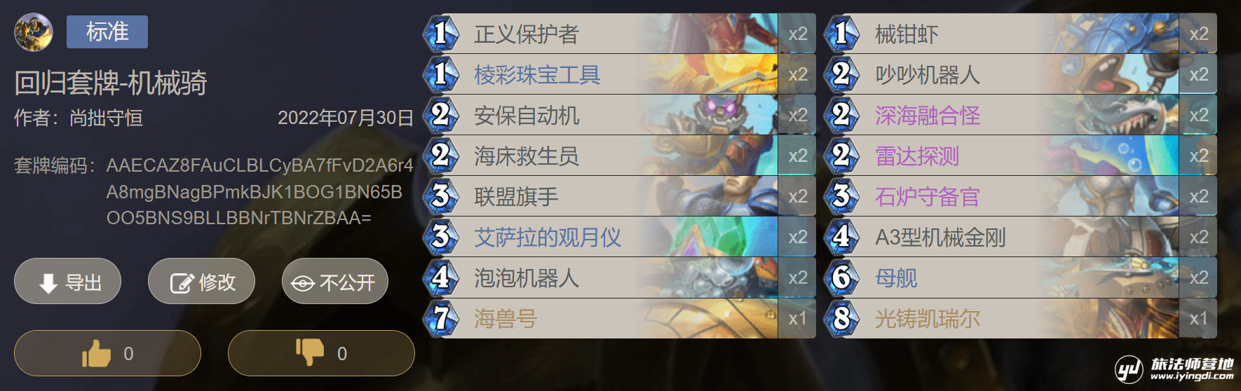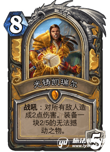 乌瑟尔的回归套牌也是机械套路,含巨型橙卡(多头蛇年)与英雄牌。新版本设计师主推的圣骑士套路为光铸骑,这两张橙卡都完美契合了光铸骑体系,实用性满分。圣骑士下限高但上限偏低,比较吃牌序,推荐新手玩家选择。唯一的缺点可能是骑士套路或许有点无趣,打多了容易腻,但用来上个传说还是非常实用的。