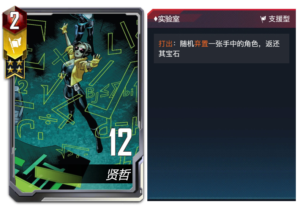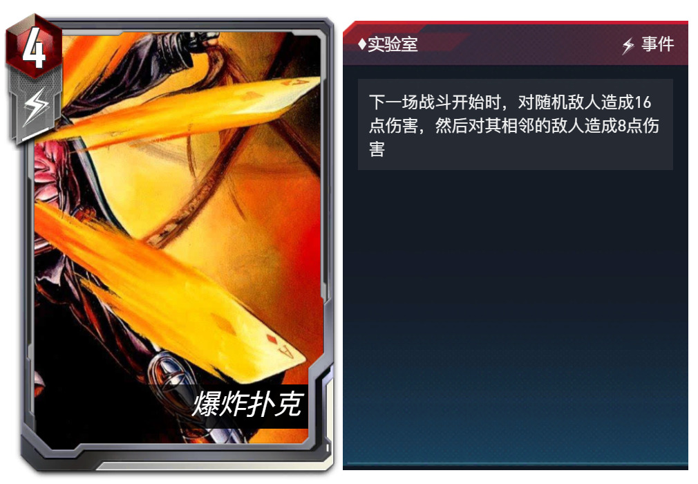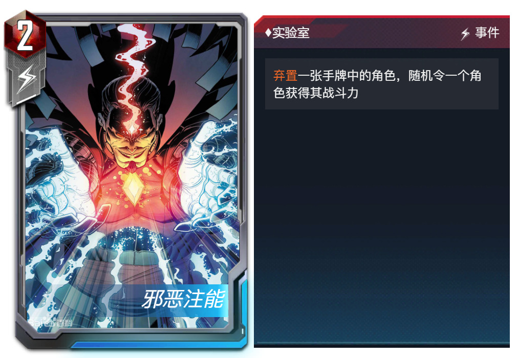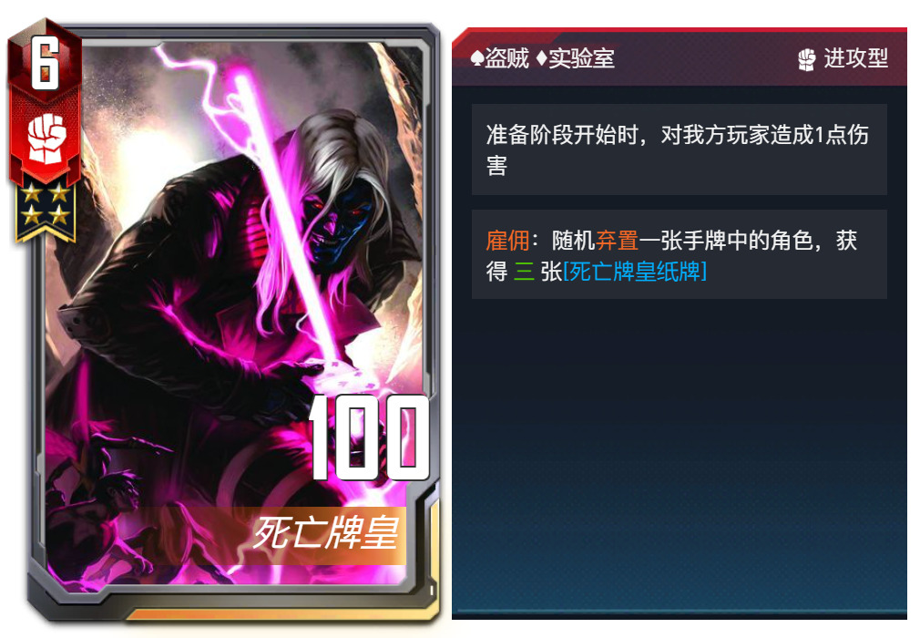 而在惊恶先生手下的【牌皇(牌皇和小淘气)】,更多体现的是他作为一名变种人的特殊能力。牌皇的能力是向身边的所有物品注入能量,从而当作武器攻击敌人。因此,通过【弃置】手牌中的角色,牌皇和变种人实验室的角色能够发挥自己的能力,来强化场面,或者产生各种效果。