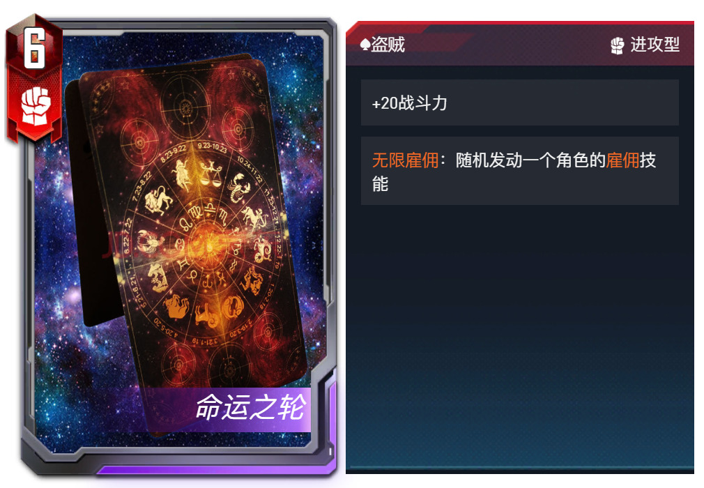 无限雇佣的意思就是没有每回合限一次的限制,因此你可以通过命运之轮来无限雇佣场上的角色,只要你宝石够多,你可以拿到很多牌皇的卡牌,拿到很多装备,或者获得很多战斗力