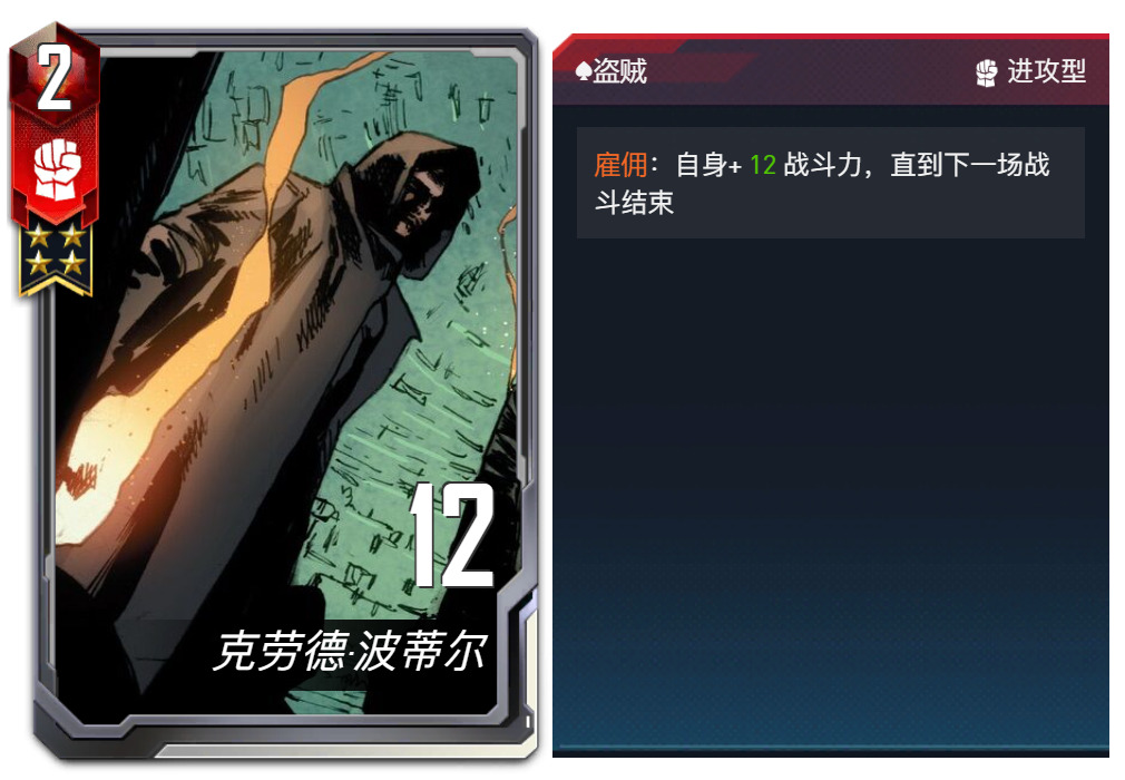 在盗贼工会的【牌皇】,拥有着名叫【雇佣】的能力,盗贼工会的成员能够接受雇佣,只要支付一个宝石,他们就能用自己的能力在准备阶段获得一定的收益,比如克劳德·波蒂尔能够强化战斗力,牌皇能够给予牌皇的卡牌提供各种效果等等。