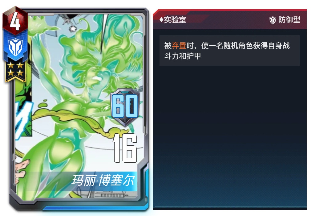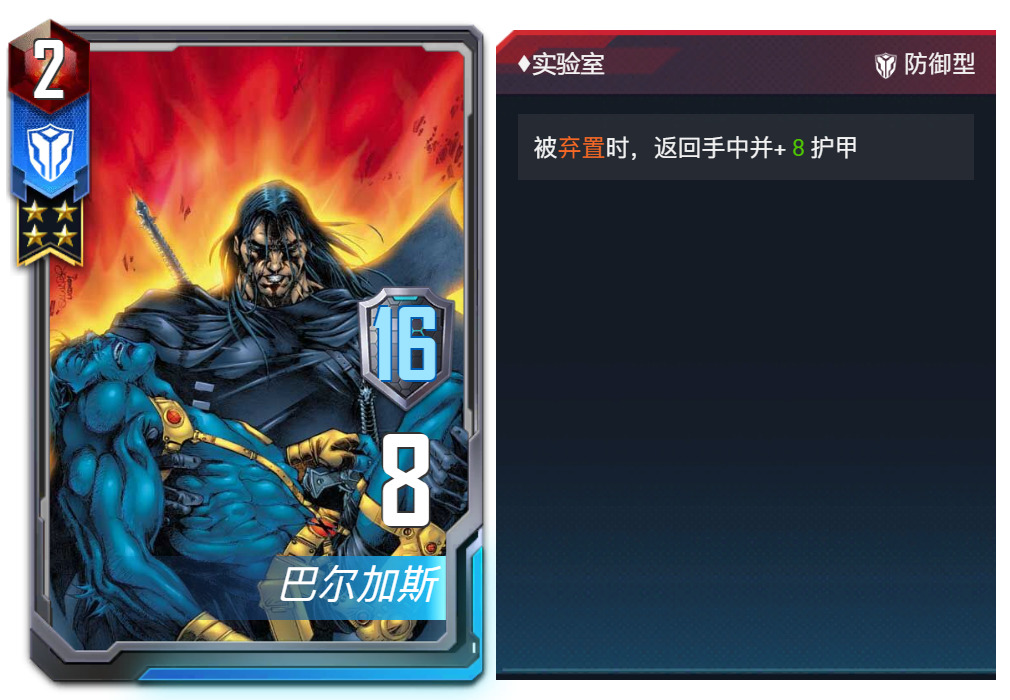 变种人之一,可以放心配合弃置牌的角色,弃掉很多次之后护甲会很高