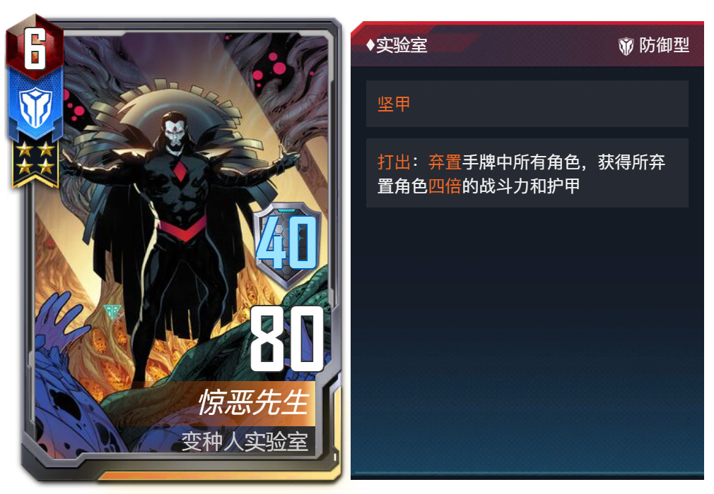这张牌代表了惊恶先生的恐怖研究,他可以通过提取DNA来复制变种人的能力,并且进行克隆