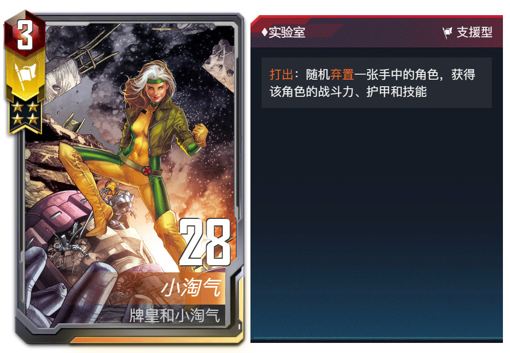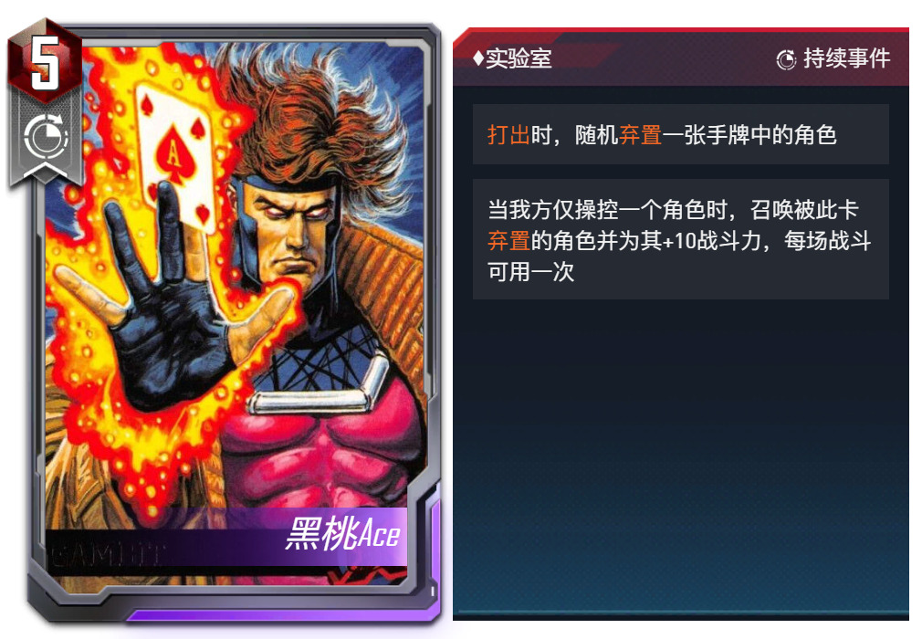 变种人之一,牌皇的官配,能够通过触摸(弃置)来获取其他人的能力,是涨拥有无限潜力的卡牌。