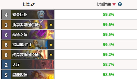 以骑士的餐会巨仆为例,现在这张牌已经登顶骑士胜率榜首,可以说环境里能处理它的手段所剩无几。