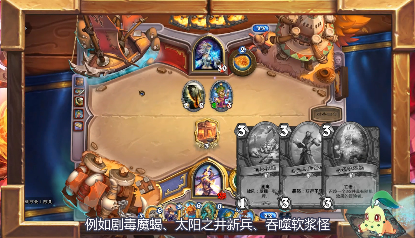 首先,标准环境的离开带走了大量优质3费,例如剧毒魔蝎、太阳之井新兵、吞噬软浆怪、背背小鬼、恐狼指挥官、潜水泥鳞鱼人等等,这让很多中慢速卡组混前期的能力**降低。3费仅仅出个334白板,对抗低费铺场大军是比较无力的。