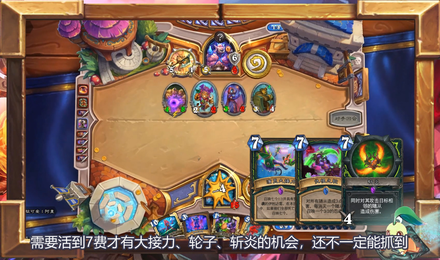 另一张新卡石缚加尔贡和回归的沙漠之矛则是承担起了控频率的重任,前期劣势也完全不用怕,一个突袭狂战斧就全解了。提醒大家,在对抗猎人的时候也尽量把嘲讽和低攻随从放两边,以免被这个溅射伤害直接打崩。