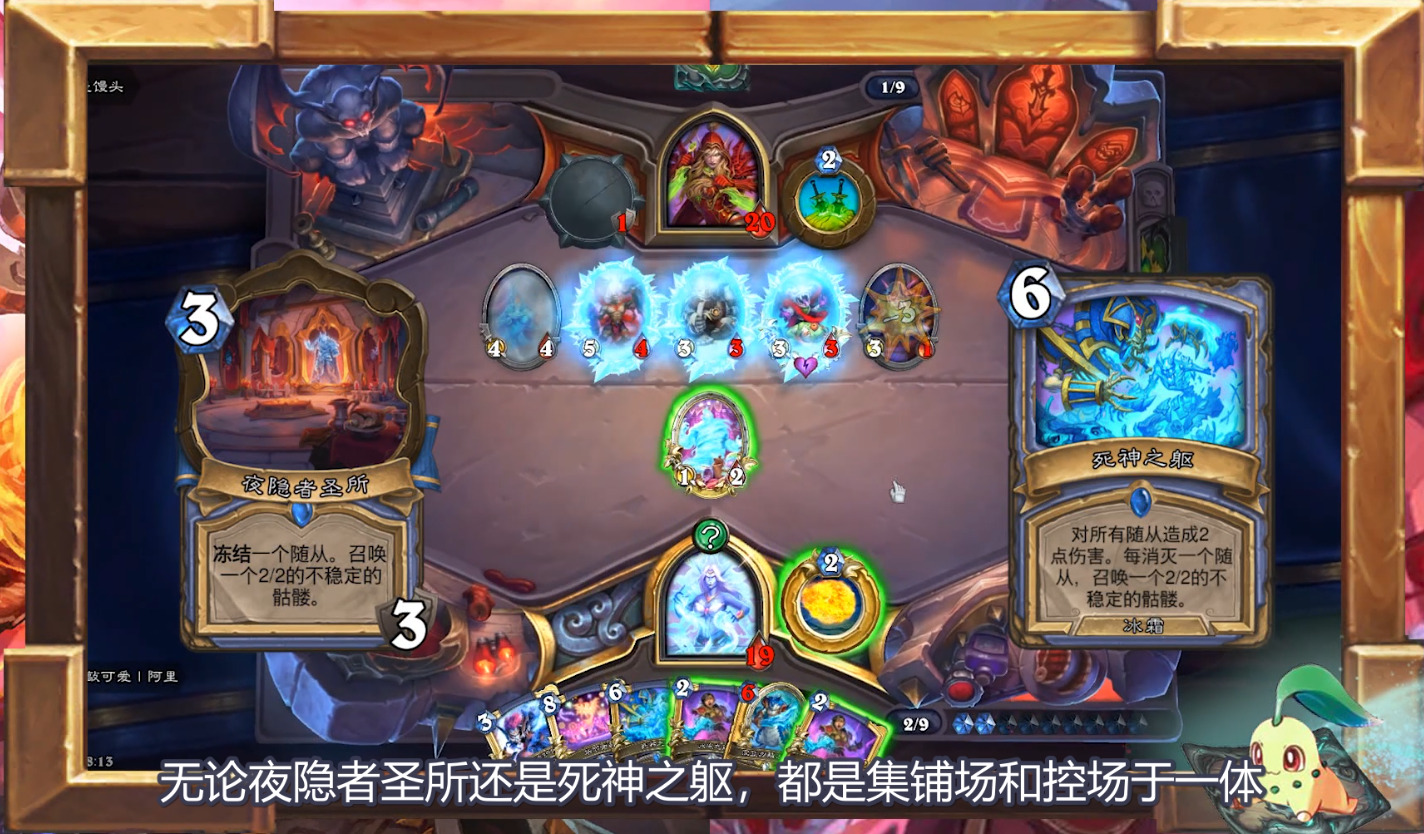 而法师,最强的两张牌也是吃到了版本红利。无论夜隐者圣所还是死神之躯,都是集铺场和控场于一体:冻3次大怪,铺3个22,或者把对面解光自己铺一地22。无论哪张,打出来都可以让对面快攻直接破防。