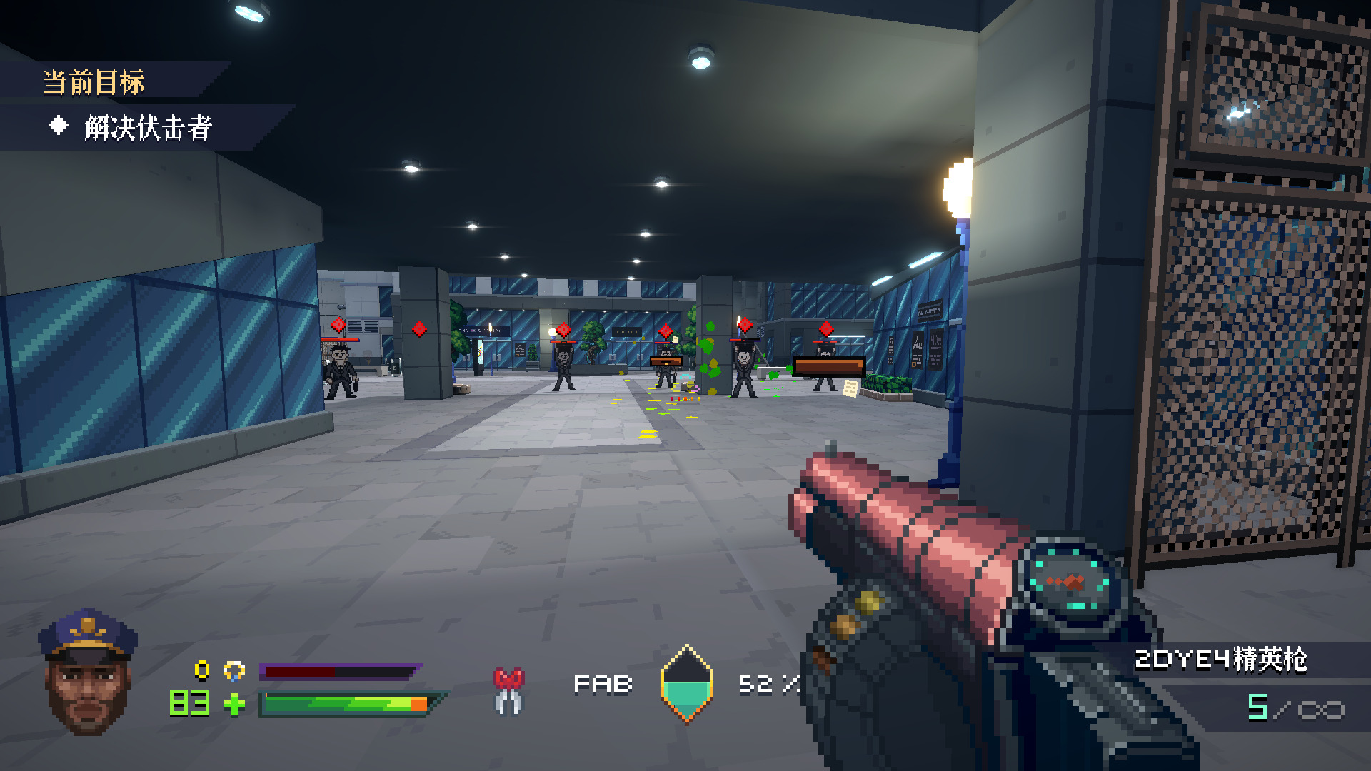 游戏的玩法与普通的射击游戏别无二致,但是在这个画面下产生了很好的化学反应,给人一种全新的观感。