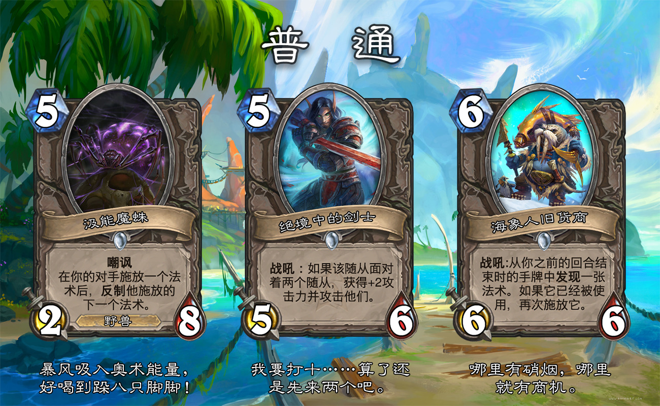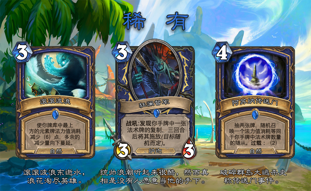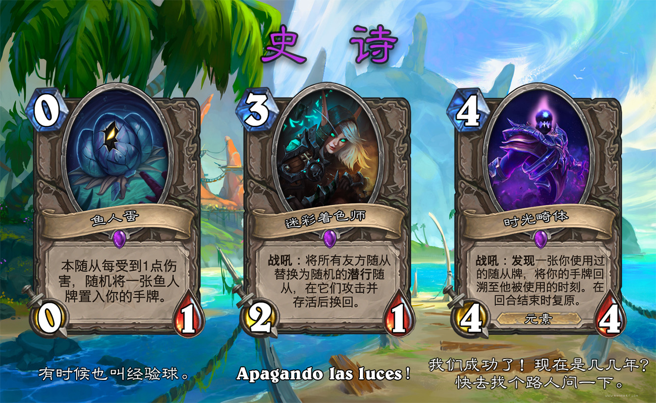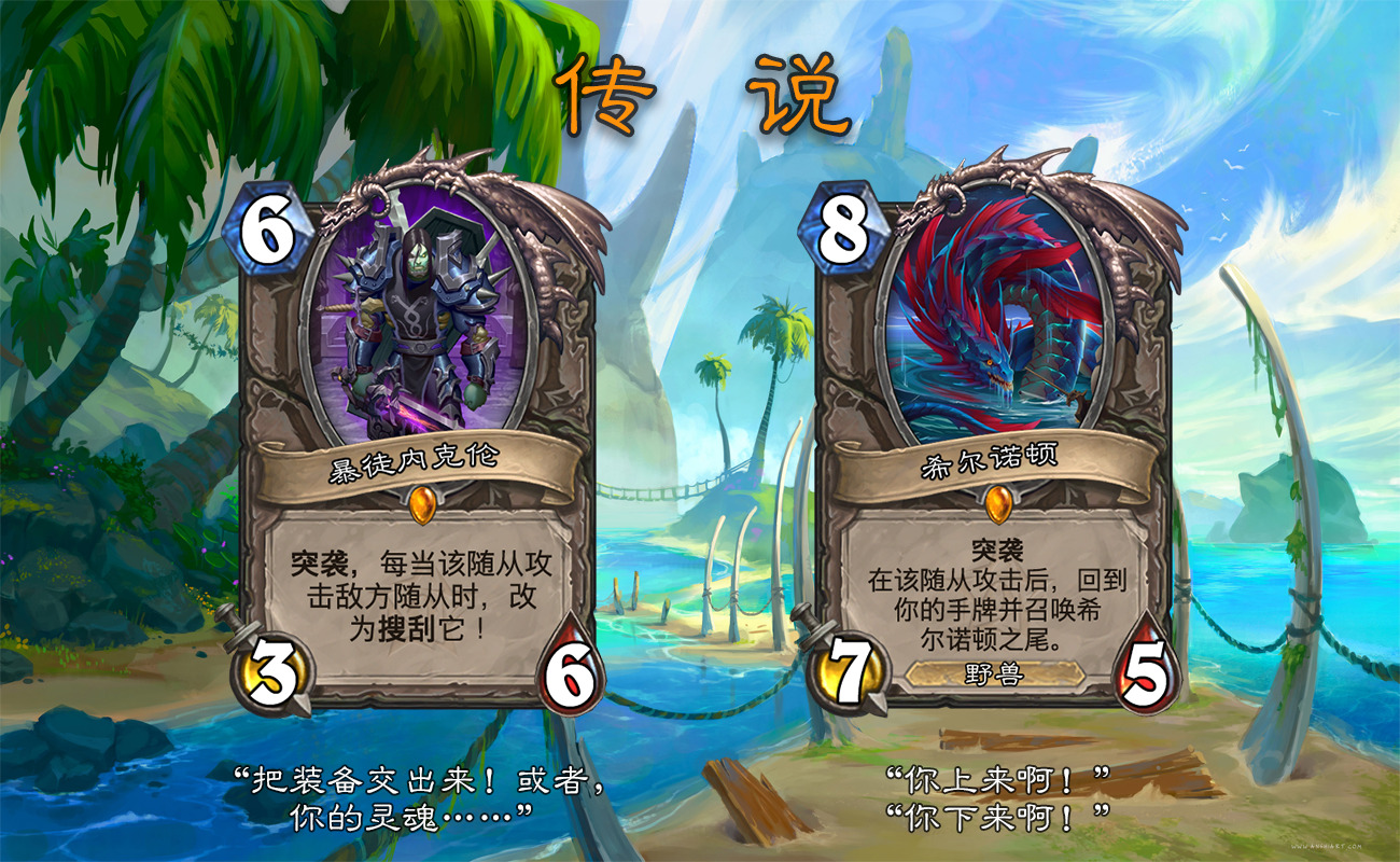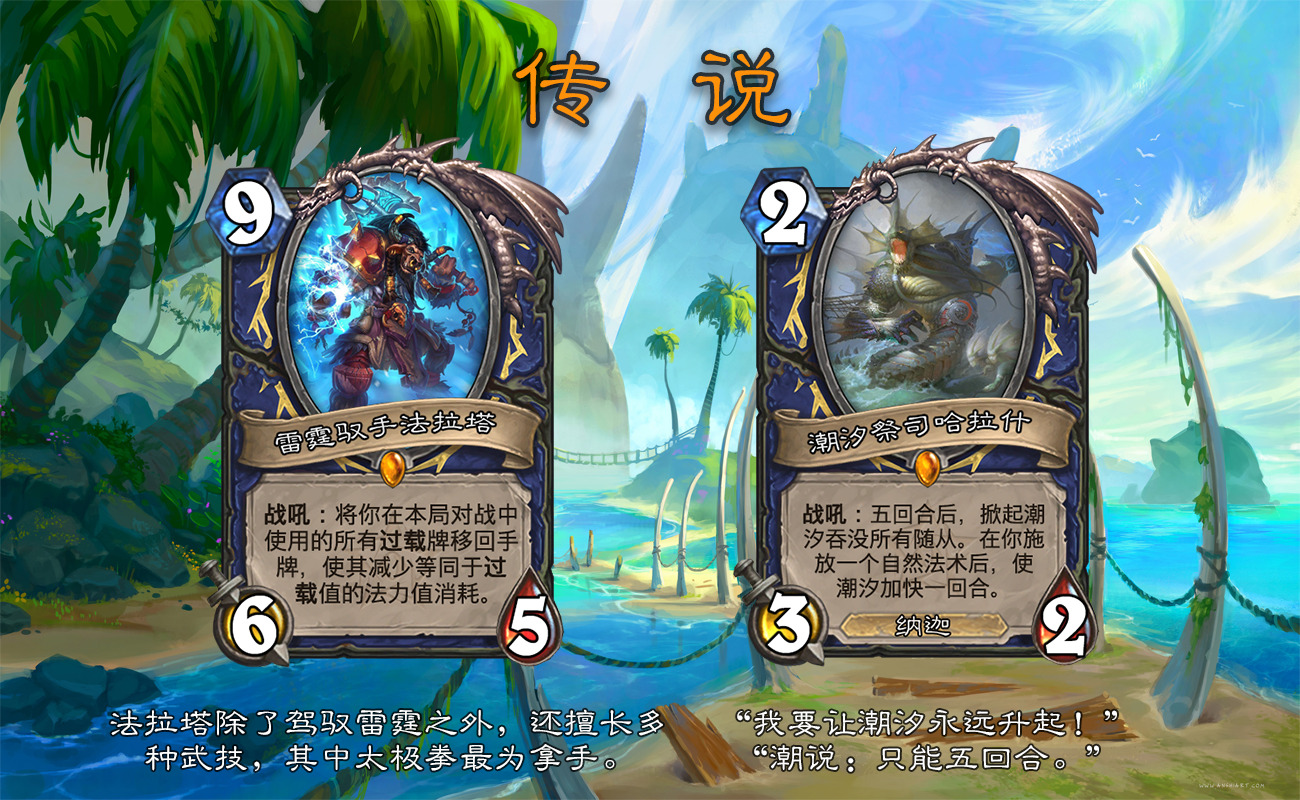 “群岛是纳迦的地盘,踏足积怨部族的下场就是被潮汐吞噬。然而萨满选手也绝非善类,强力的过载法术将如闪电般归来!真正的闪电!”
