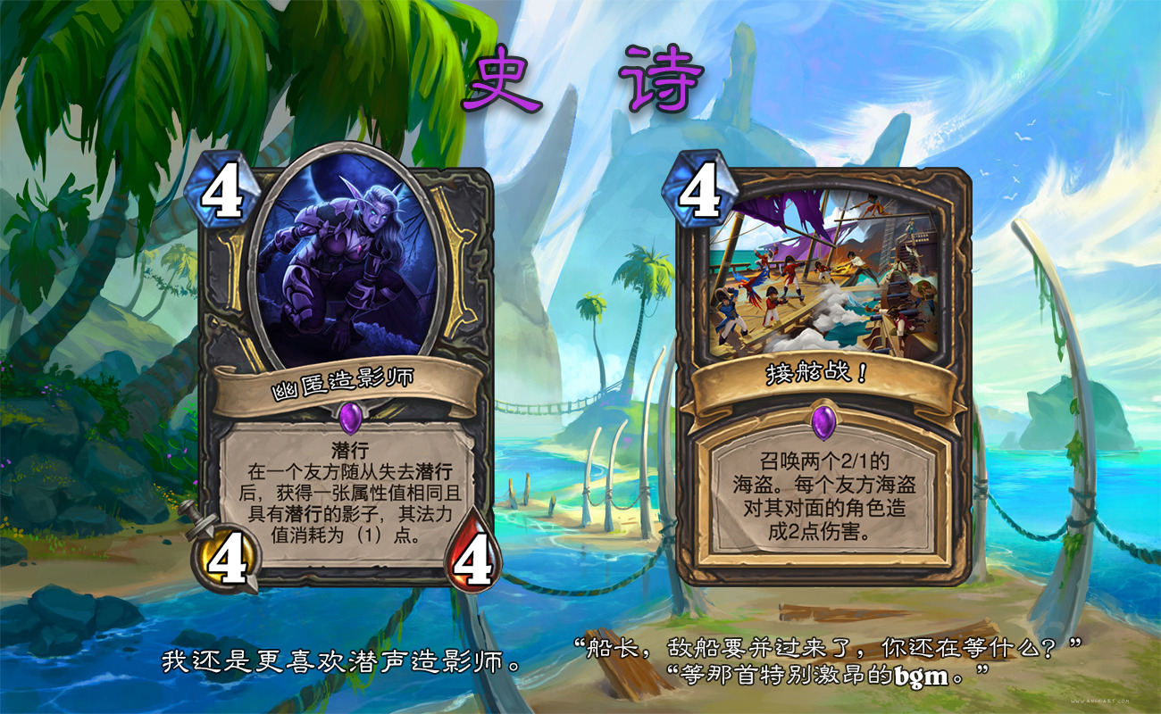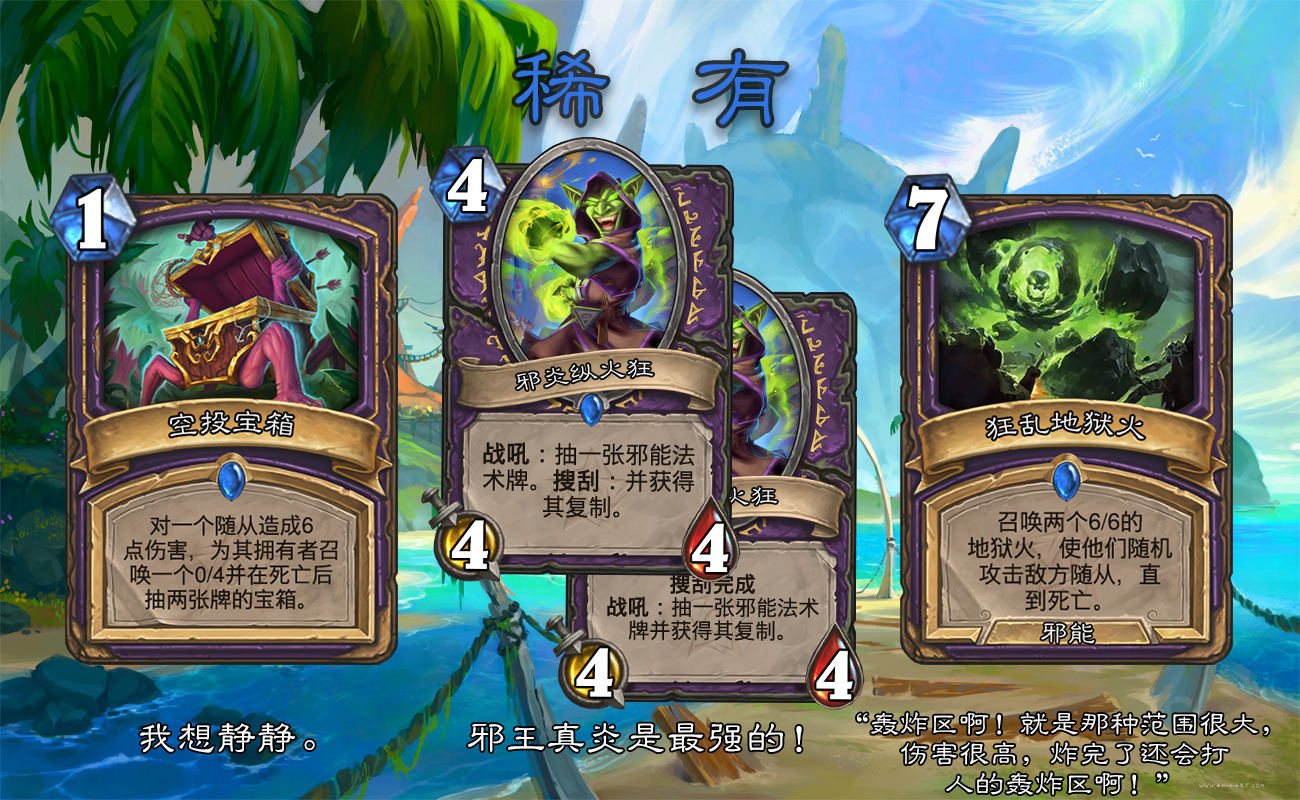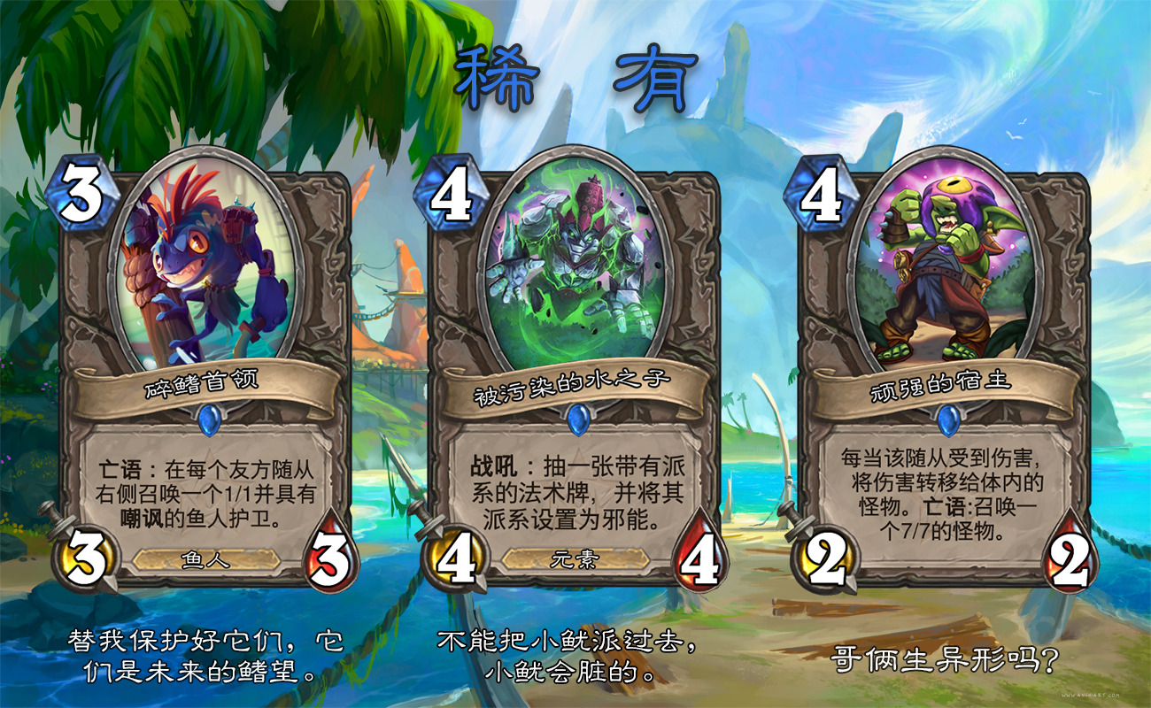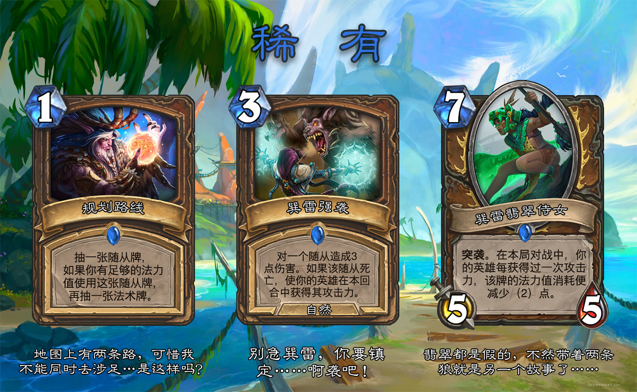 “群岛是纳迦的地盘,踏足积怨部族的下场就是被潮汐吞噬。然而萨满选手也绝非善类,强力的过载法术将如闪电般归来!真正的闪电!”