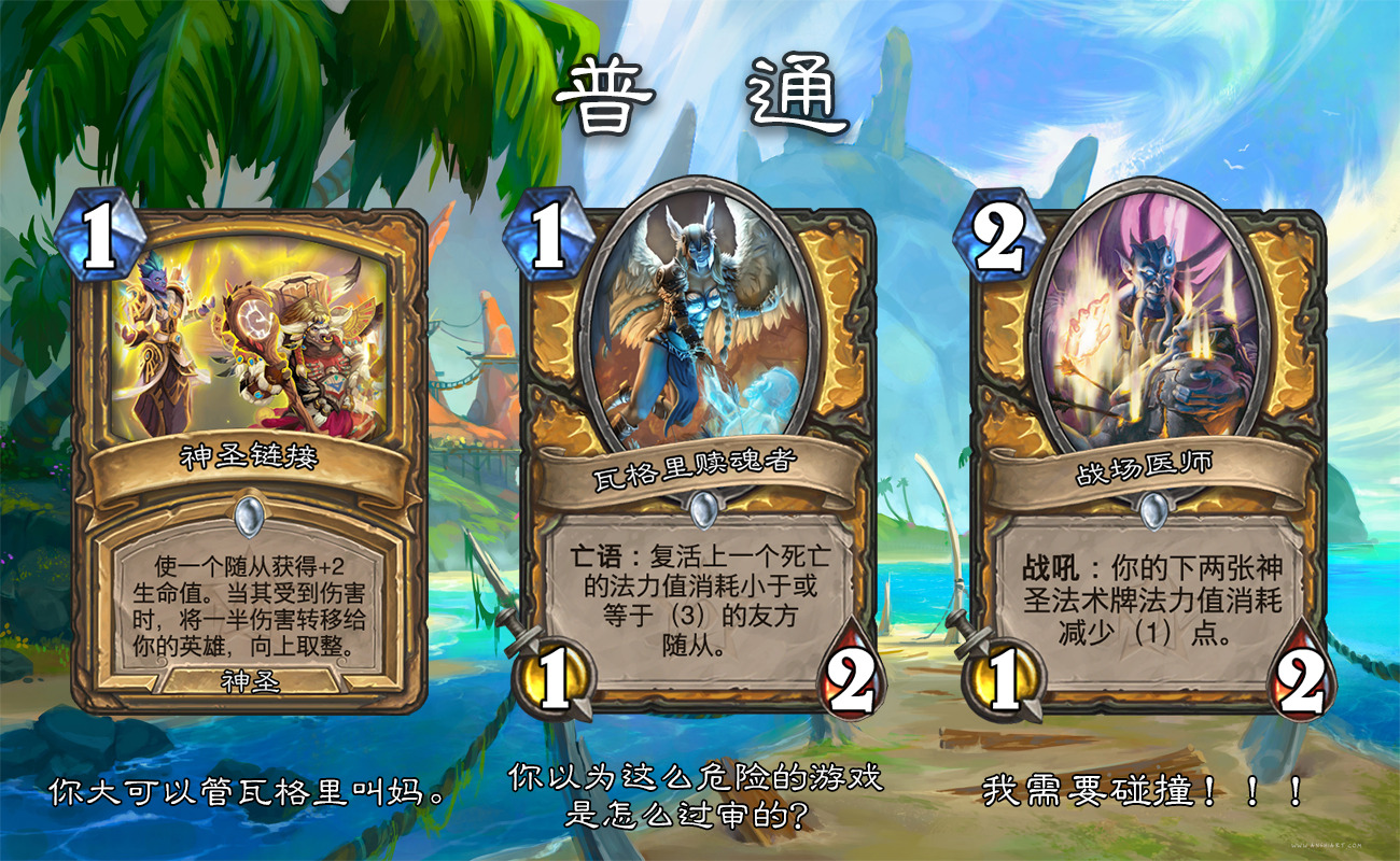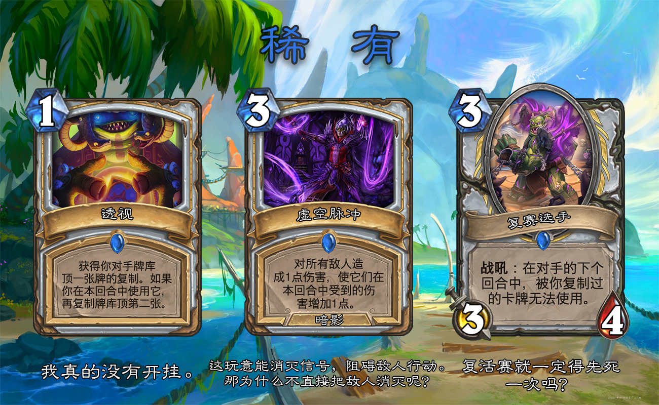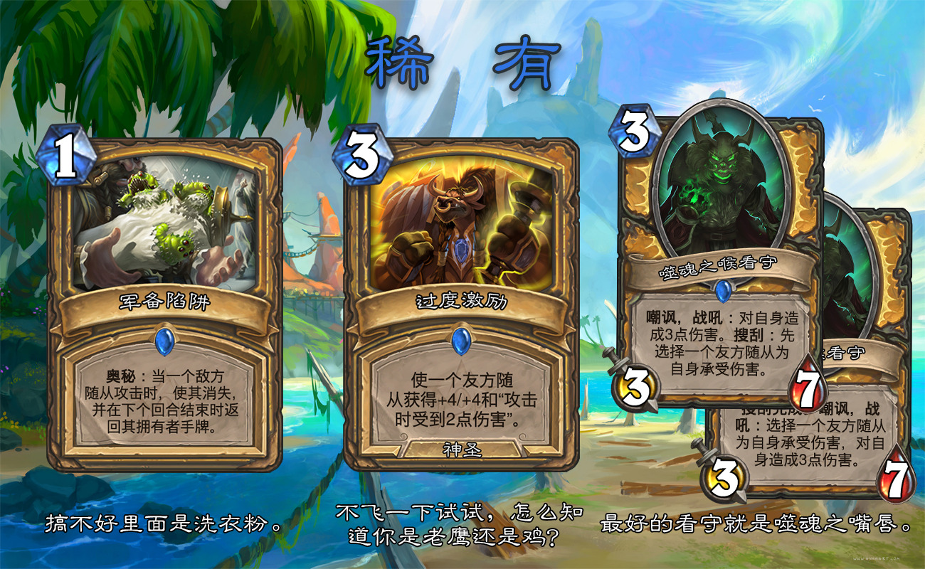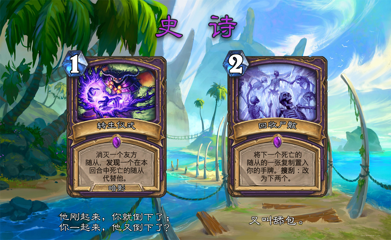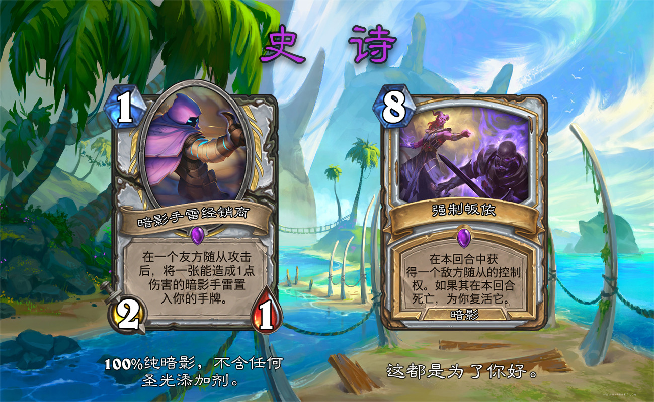 “群岛是纳迦的地盘,踏足积怨部族的下场就是被潮汐吞噬。然而萨满选手也绝非善类,强力的过载法术将如闪电般归来!真正的闪电!”