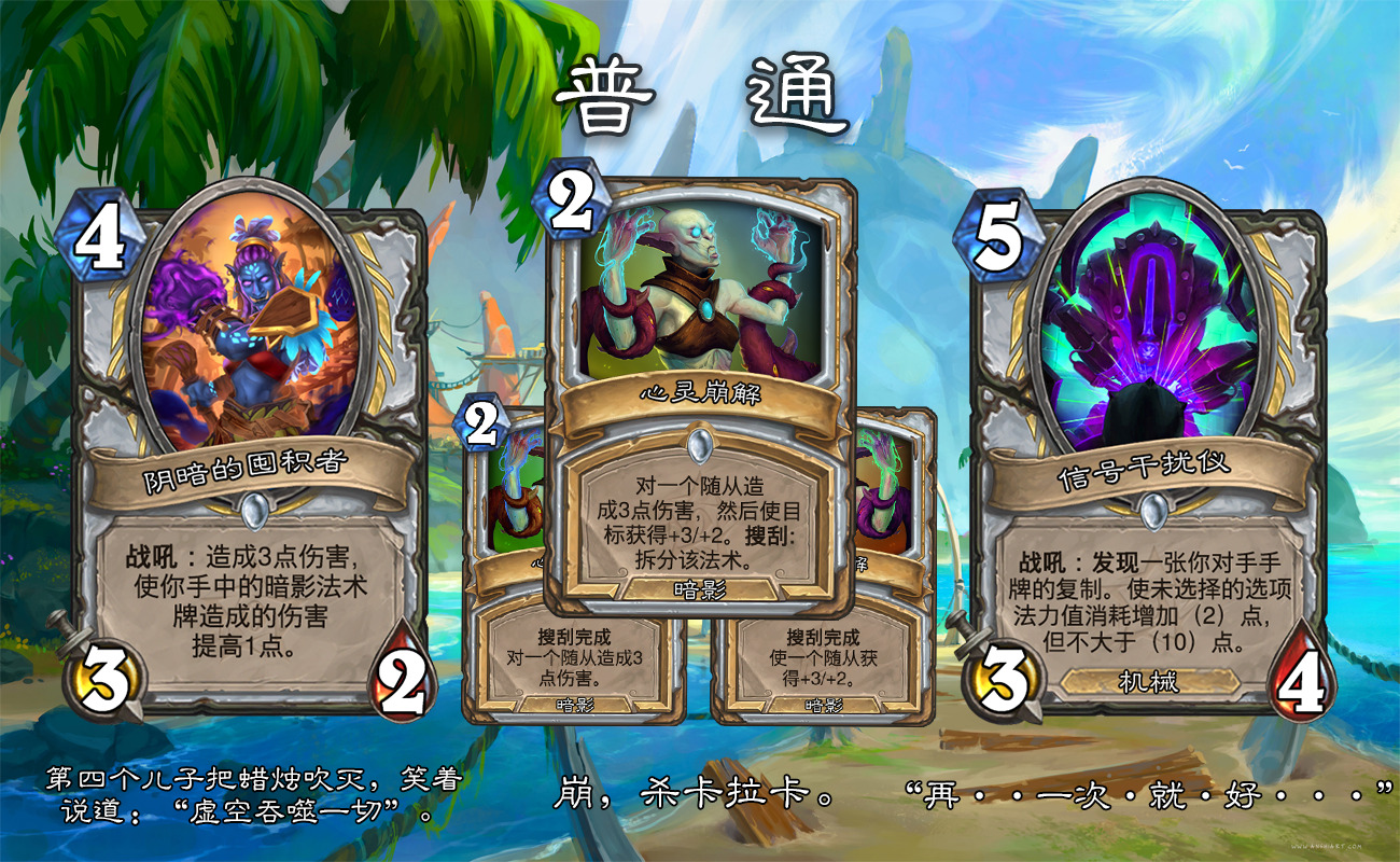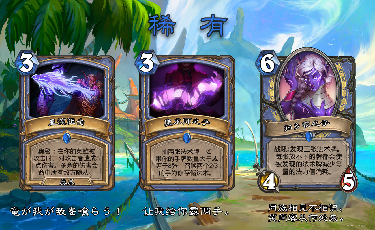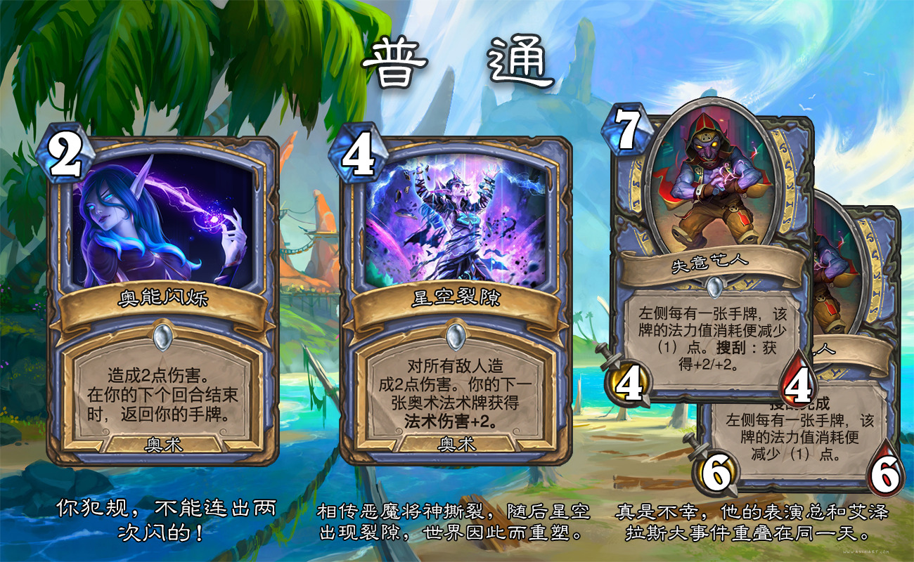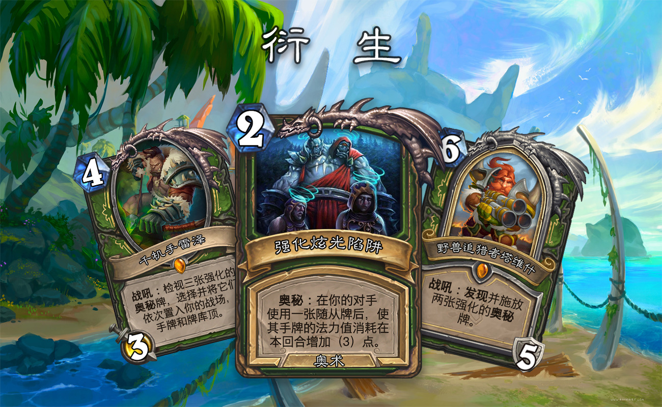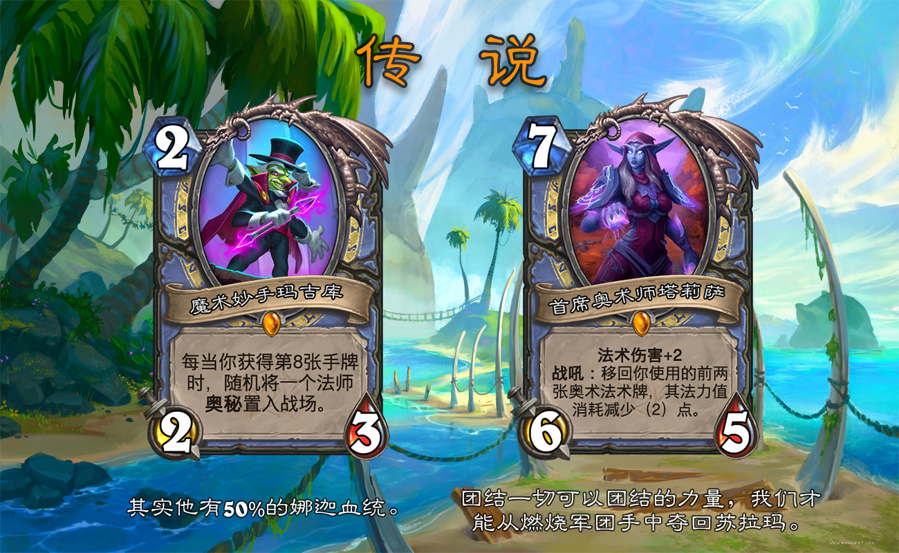 “大魔术师玛吉库与他的助手们妄图借助比赛开展最后的演出,你的手牌越多,他们的热度就越高!与此同时,擅长奥术魔法的堕夜精灵也驻扎于此,他们破坏性极强的能量将成为扭转的关键筹码。”