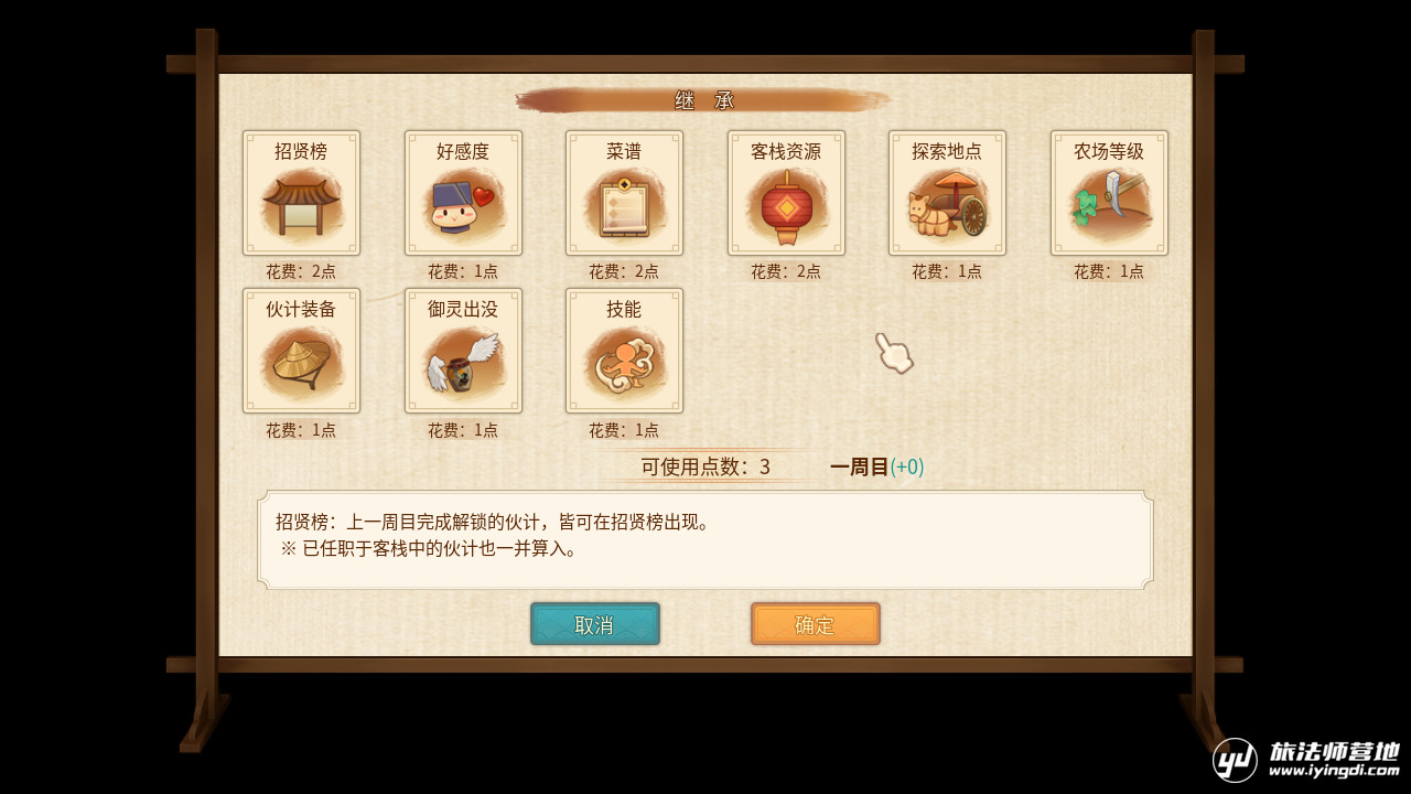 直到三月末(正月初客栈开的张),游戏允许你结束一周目游玩,然后开启继承系统——