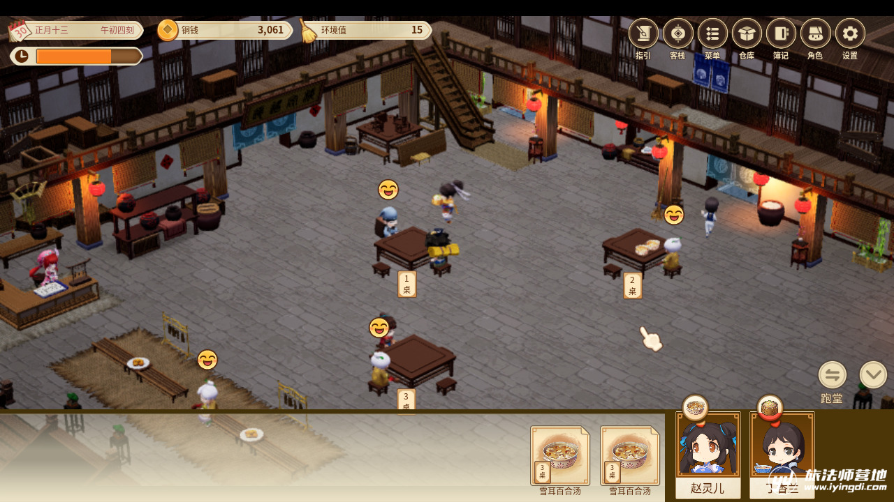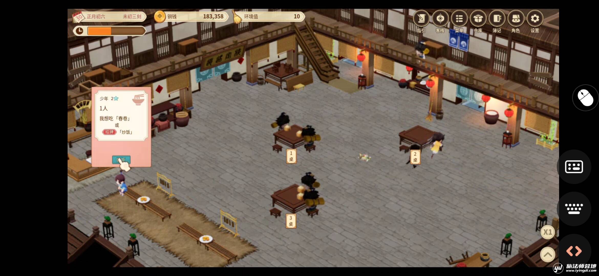 在白天,你可以外出采购,去农场种菜,分配工作人员以开始经营。客栈营业时,需要接待客人,收取小费,处理突发情况(扫地,驱赶老鼠等)。