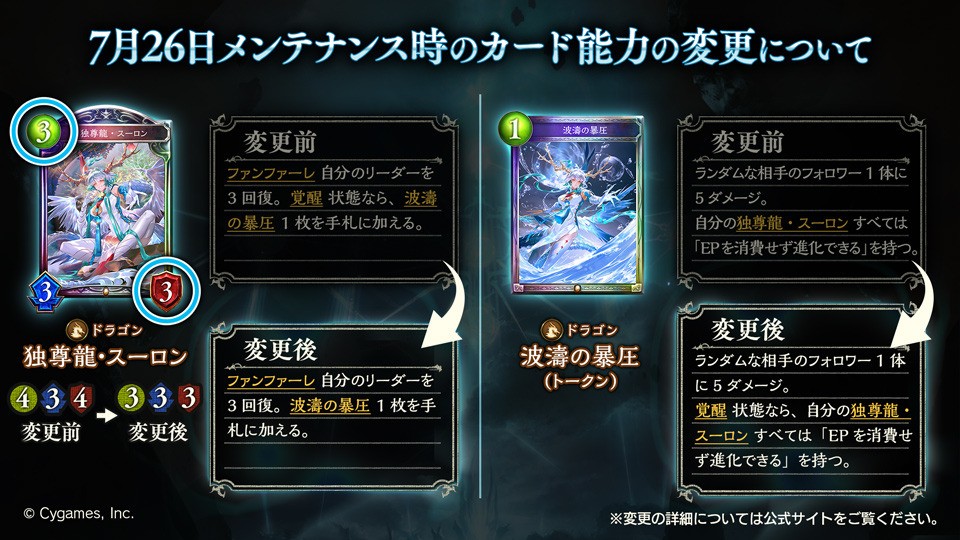 根据Cygames的消息,即将于7月26日进行的服务器维护中,将会实装新的平衡性调整补丁。独尊龙·四龙迎来加强,而刚在无限赛制被砍了一刀的鱼丸又将迎来第二刀。
