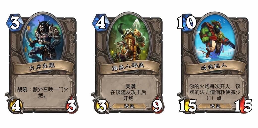 - 招牌宝藏5甲板杂兵,2费1/4,在你的回合结束时,开炮!