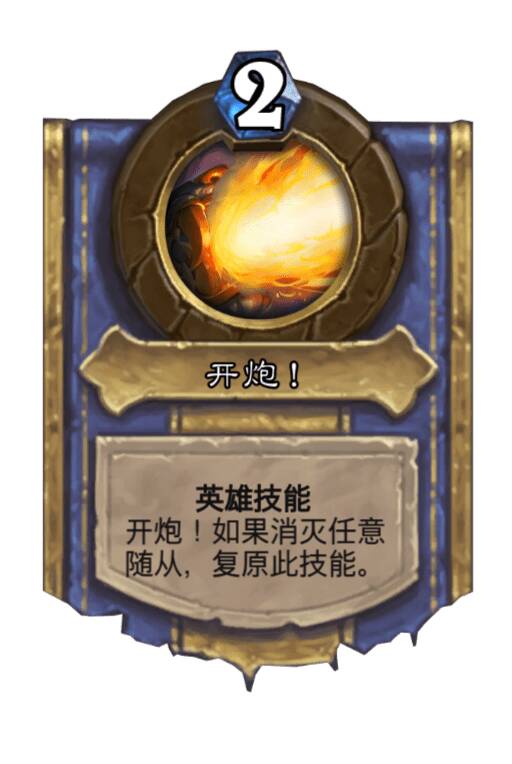 - 技能2Fire Away!,2费,开炮!使你的随从获得+1攻击力。