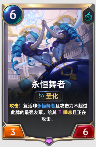升级的卡特死了,永恒舞者+1攻进攻就会优先召卡特,卡特进攻时的瞬息是不会触发的,a了之后会直接返回手牌,还送一个备战和免费匕首,这是很赚的。所以即使是缺少生存技巧有时也可以下永恒舞者进攻,不一定能够无限但优势也足够大了。