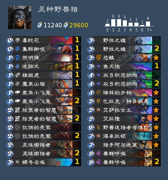 新卡试玩里鲜有试玩猎人的,不过我们试玩猎人还蛮多的。猎人的构筑体系一直是在平均水平之上的,就是我们常说的超模。但猎人的超模往往只体现在随从质量和身材上,因此,许多主播不愿意玩猎人也在意料之中。这也就是为什么Heard老师能够在试玩的时候操刀猎人嘎嘎杀的原因,可以说猎人是我们的试玩中赢的最多的。猎人的3个灵种,突袭,嘲讽,给武器各有千秋,发挥着各自的作用,也是在对局前期奠定优势的重要一环。尤其是能给4/2武器的鹿灵之种,只要能让鹿灵之种提早一回合醒来,5/4这样极具进攻性的身材以及武器都会给对手极大的压力,更不用说三个灵种全是野兽。简单的超模,极致的享受。